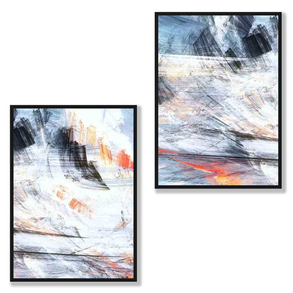 A Set of 2 Abstract Fractal Navy Blue, White and Orange.