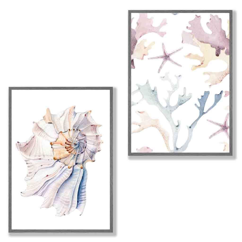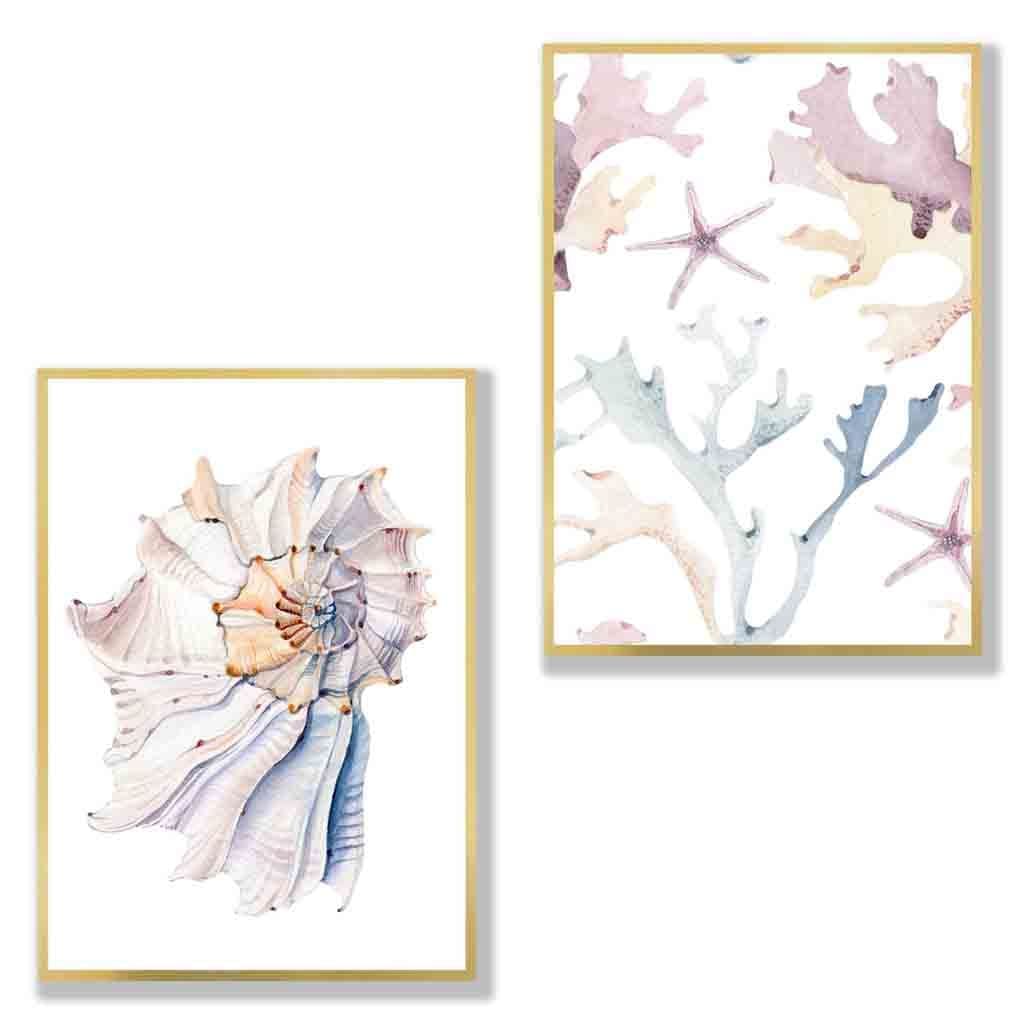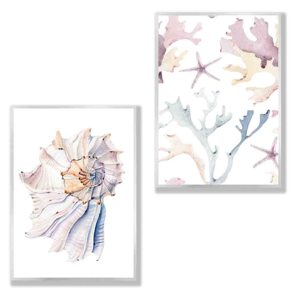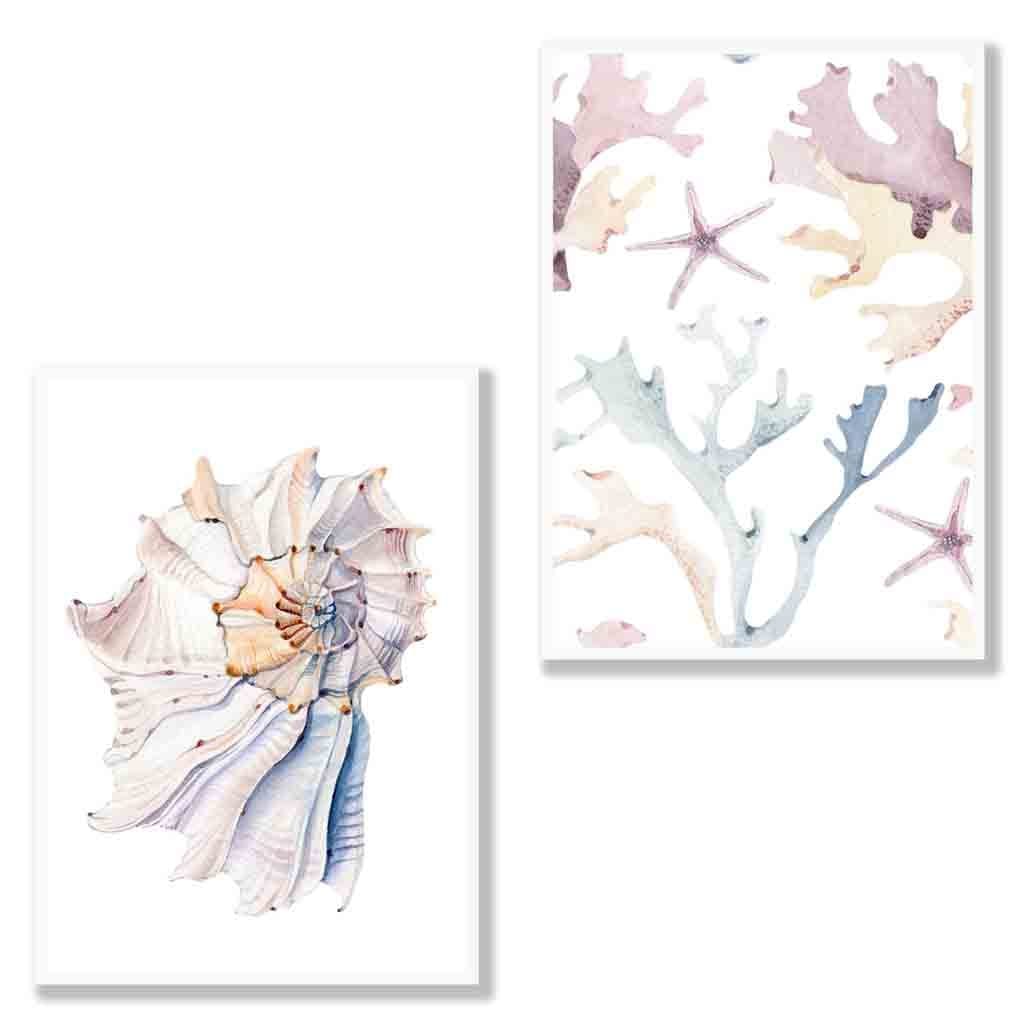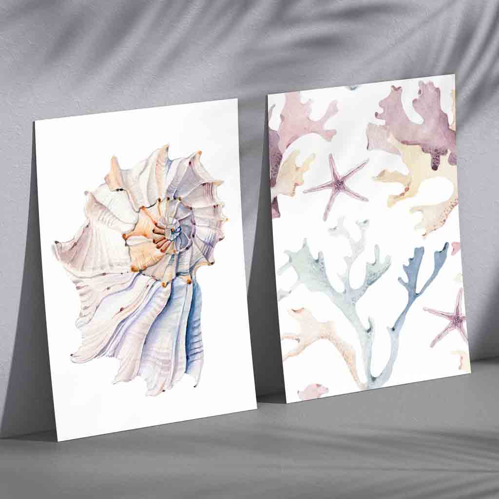 A Set of 2 Pastel prints from watercolour paintings of Seashell and Sea-life .