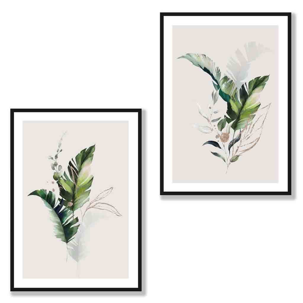 A Set of 2 Botanical Green and Gold (Not Foil) Wall Art.