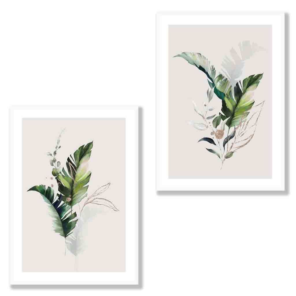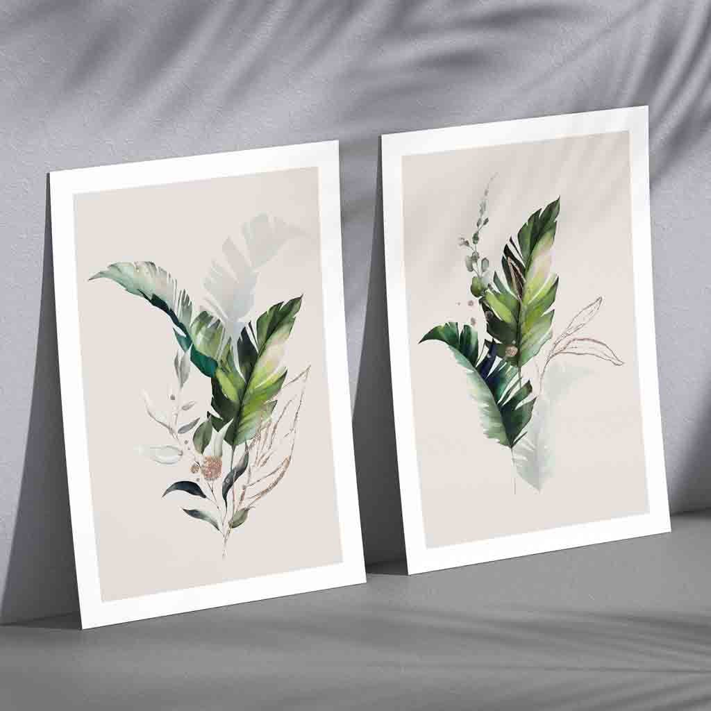 Set of 2 Botanical Green and Gold Wall Art Prints