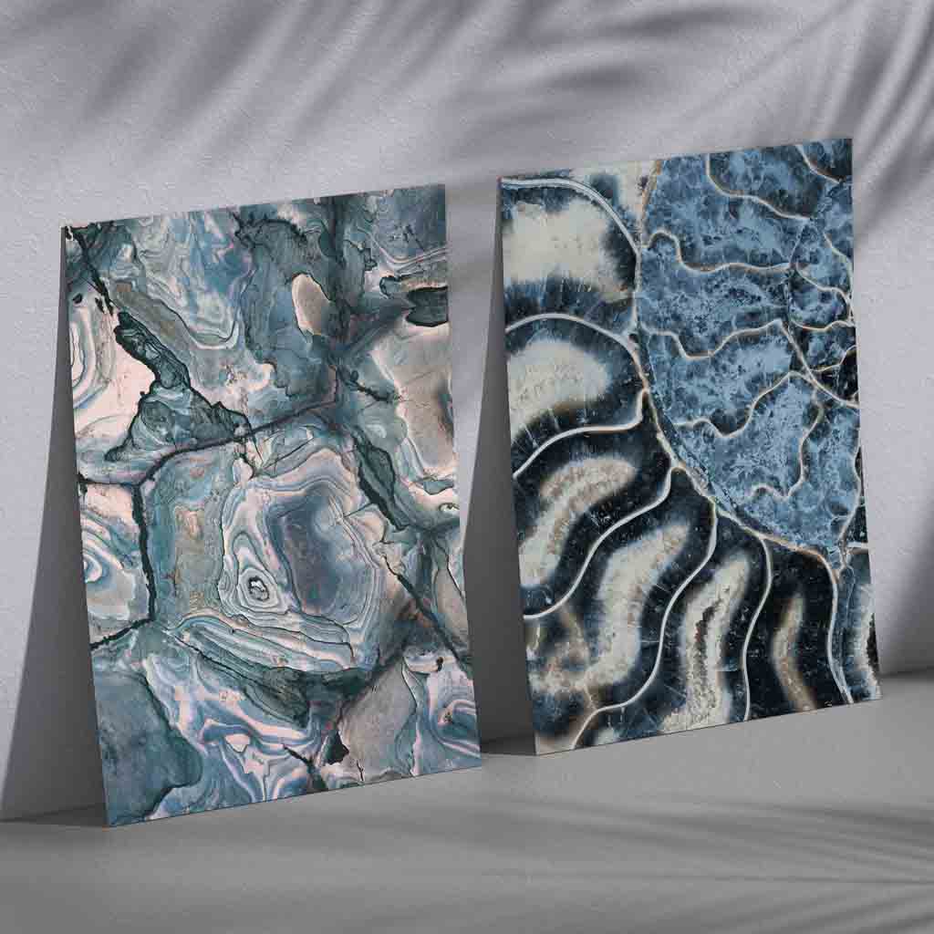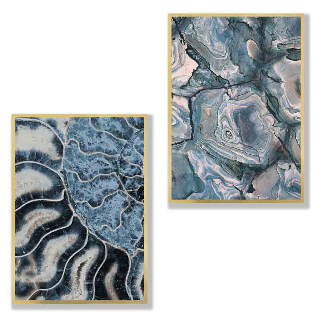 A Set of 2 Abstract Blue and Grey Wall Art Prints.