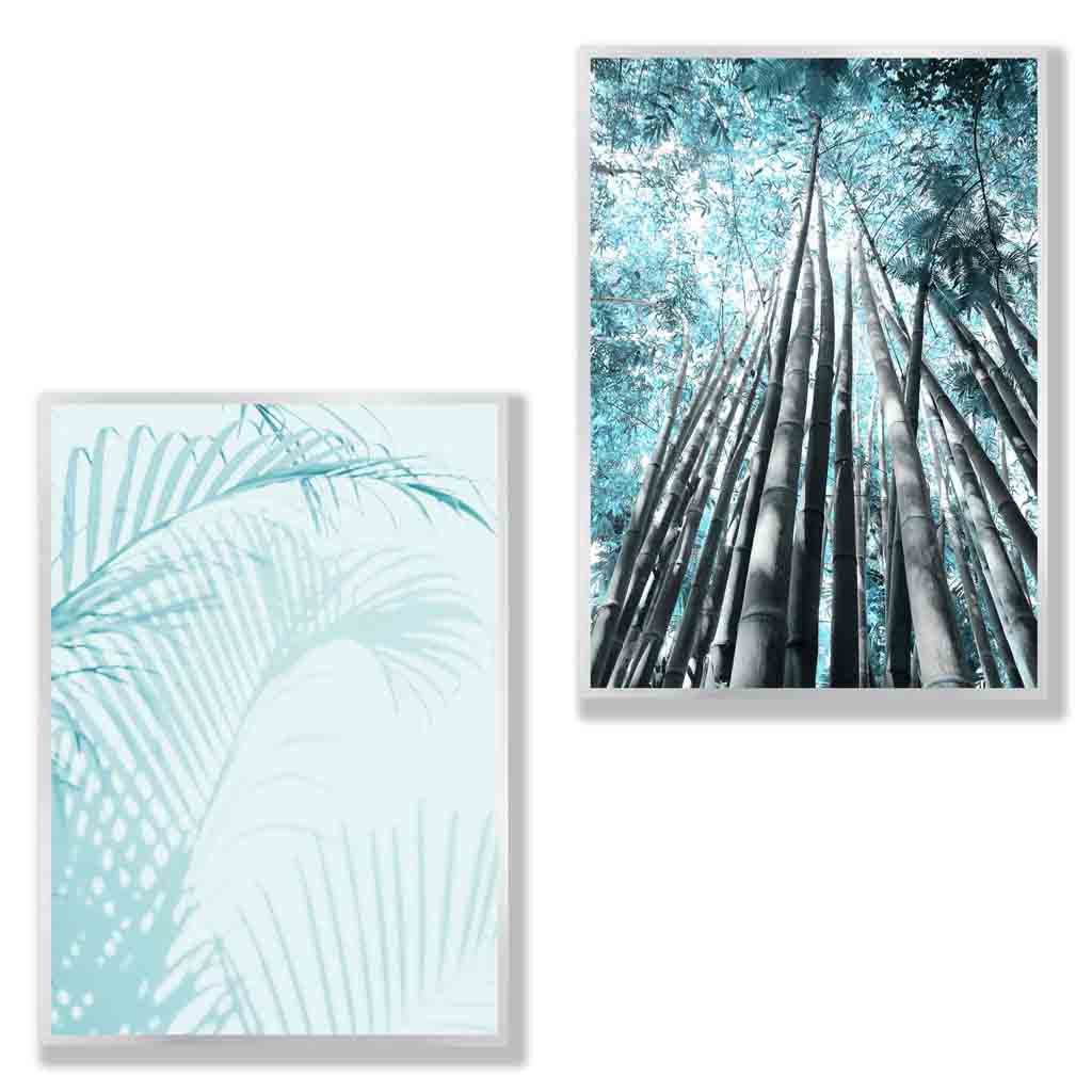 A Set of 2 Abstract Aqua Tree Fern Wall Art Prints