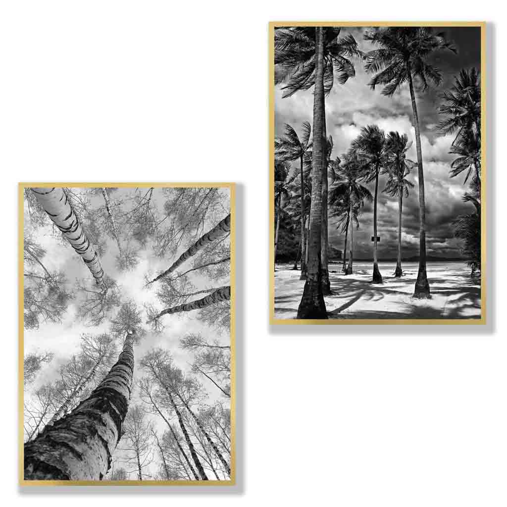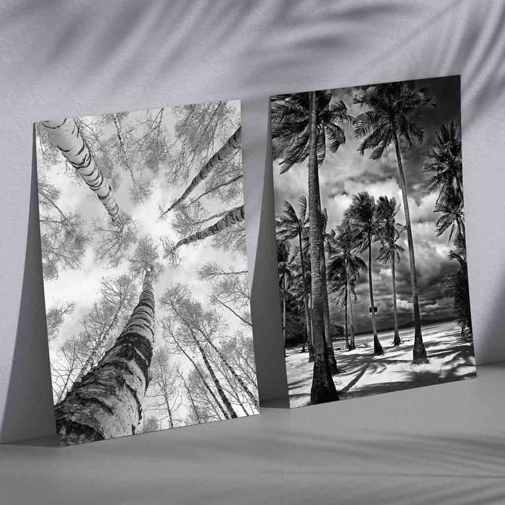 A Set of 2 Mono Black Tropical Trees Wall Art Prints