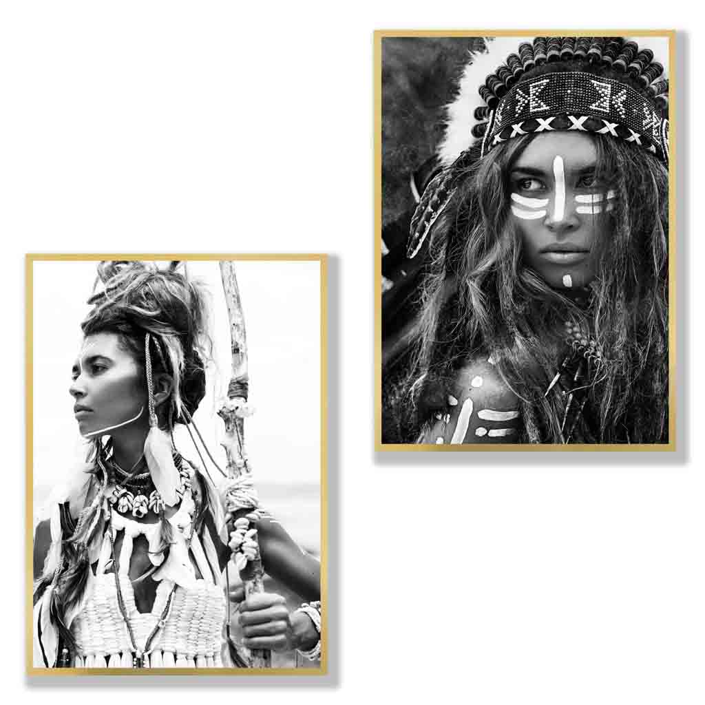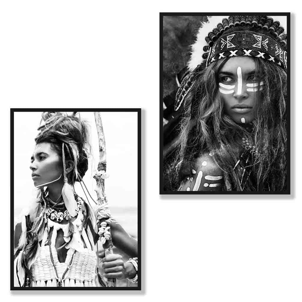 A Set of 2 Black and White Photographs of Warrior Women Wall Art Prints