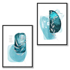 A Set of 2 Aqua, Teal and Silver (Not Foil) Abstract Botanical Wall Art Prints