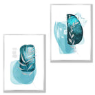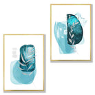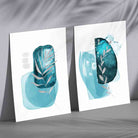 A Set of 2 Aqua, Teal and Silver (Not Foil) Abstract Botanical Wall Art Prints