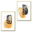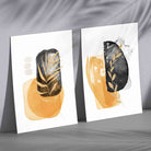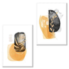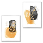 A Set of 2 Abstract Yellow and Black Botanical Wall Art Prints.