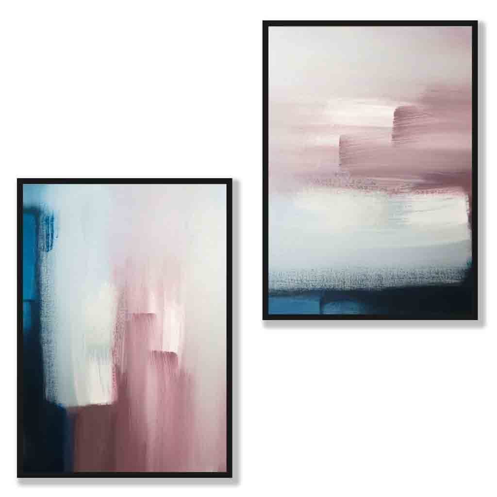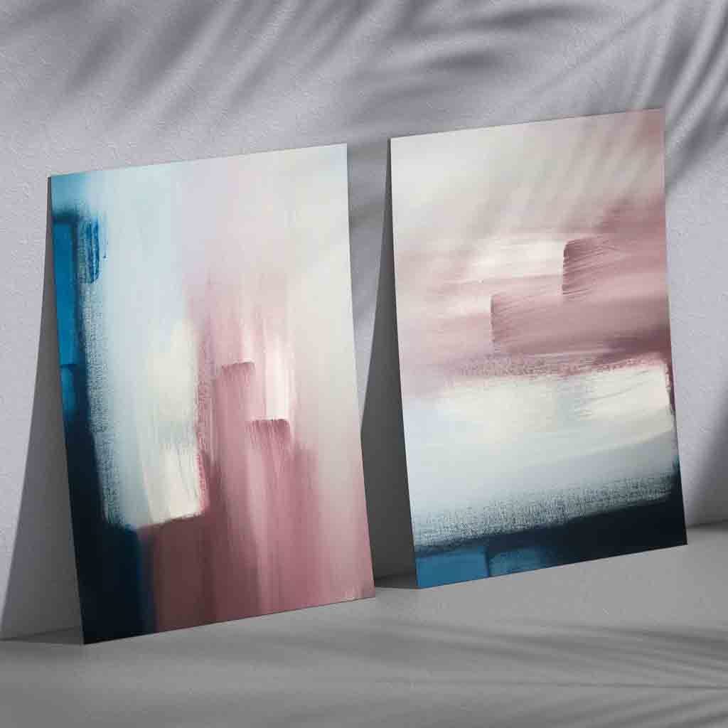 A Set of 2 Abstract Navy Blue and Blush-Pink Wall Art Prints from original Oil Paintings.