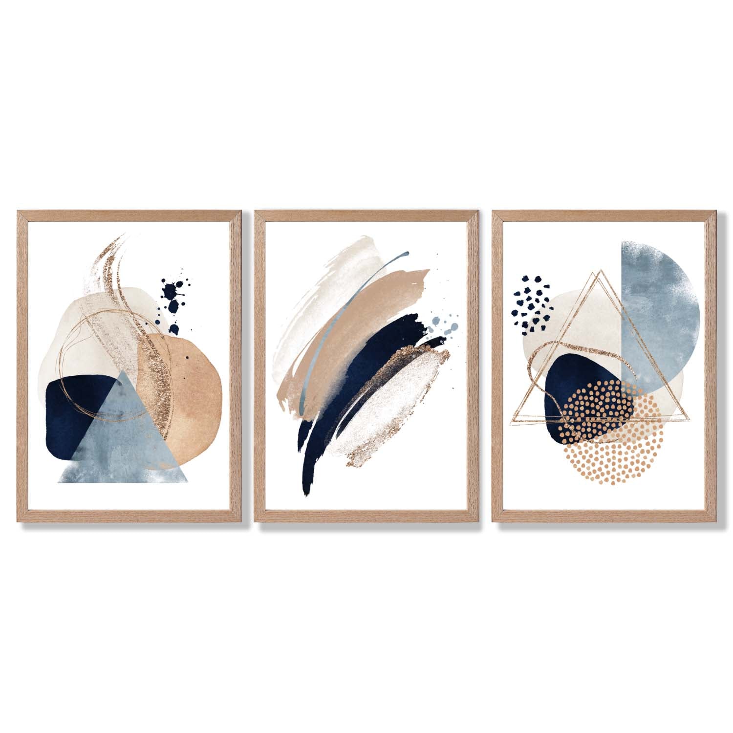 Elevate your space with our Set of 3 Abstract Beige Blue and Gold Framed Prints. These stunning pieces feature a unique and modern blend of beige, blue, and gold geometric art, adding a touch of sophistication to any room. Perfect for inspiring creativity and adding a stylish touch to your home decor.