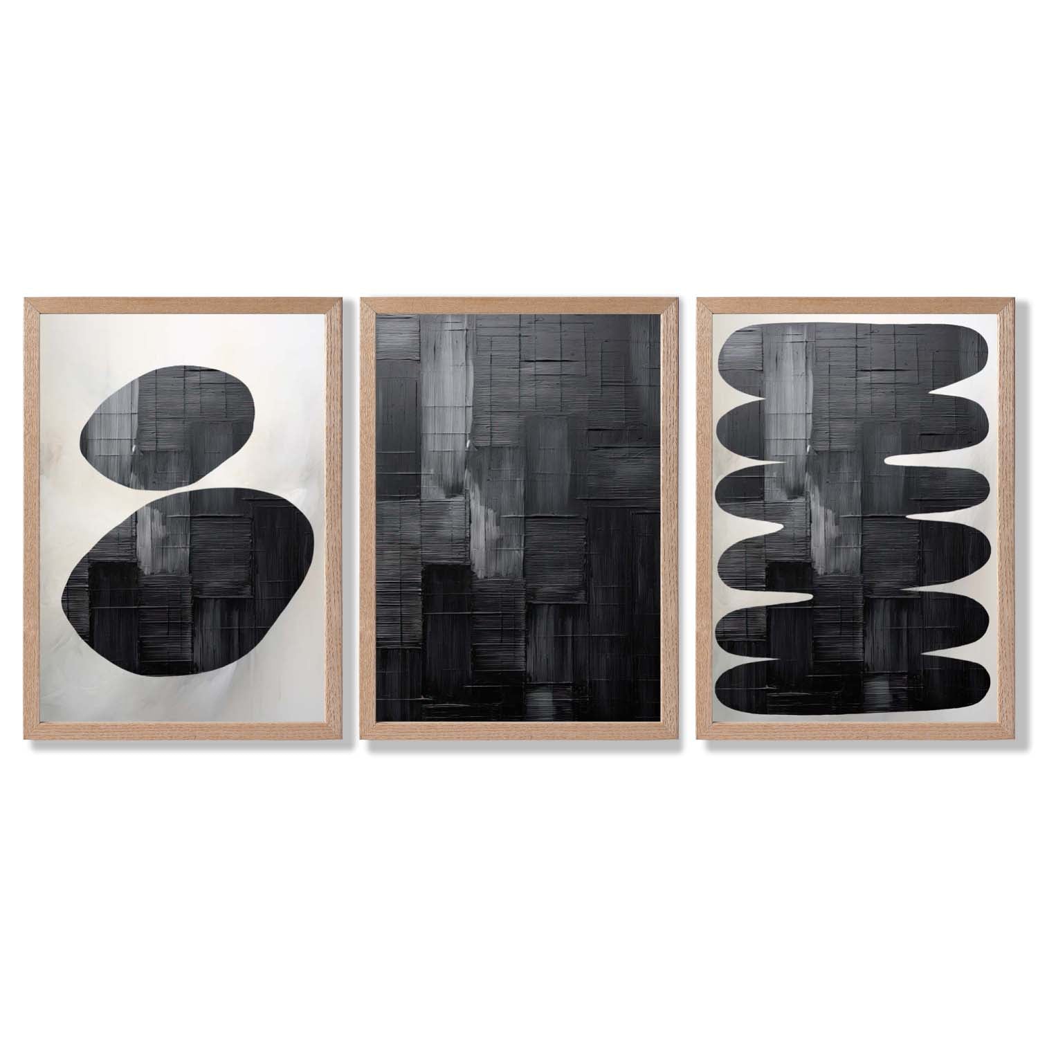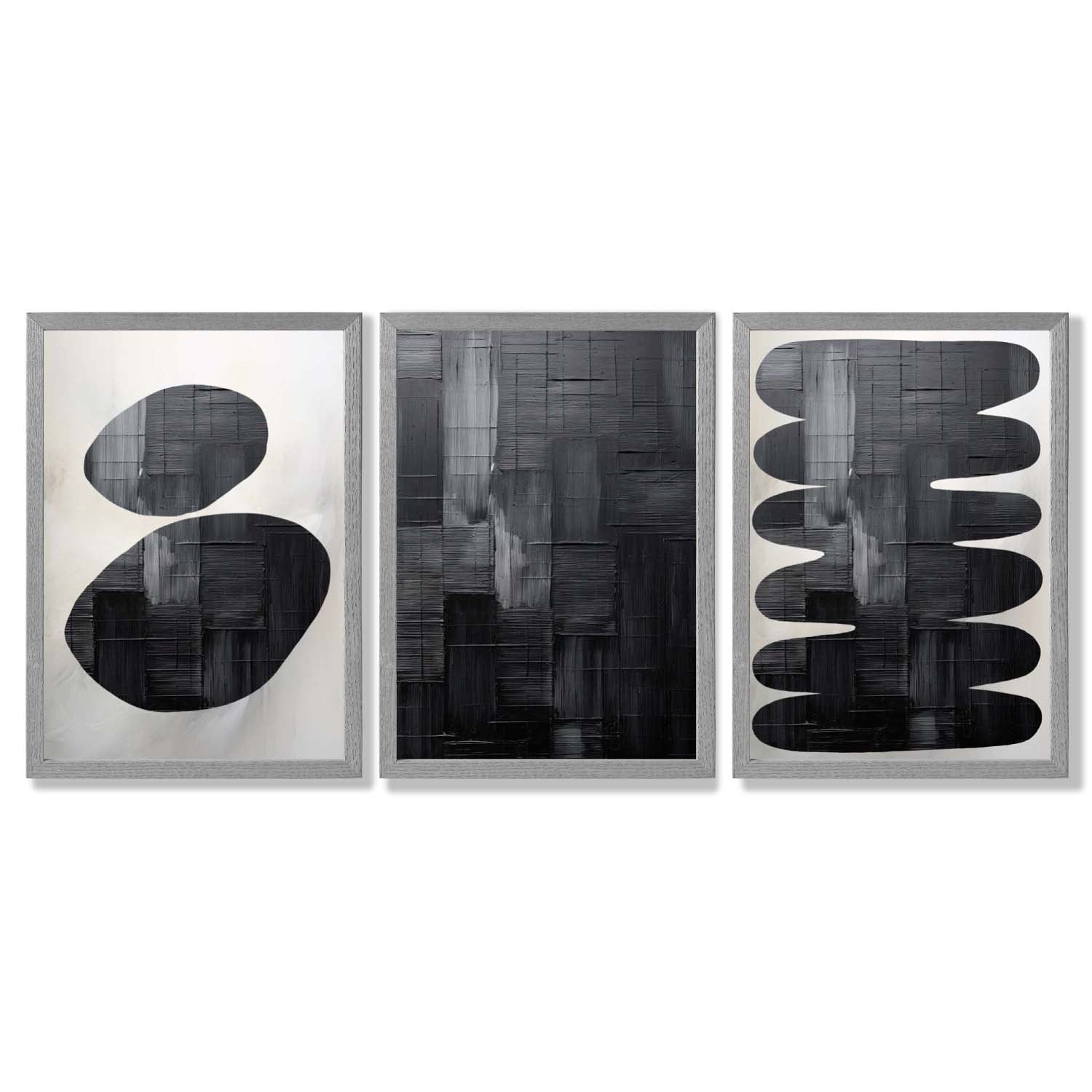 Set of 3 Abstract Black and Grey Zen Stones Framed Art Prints
