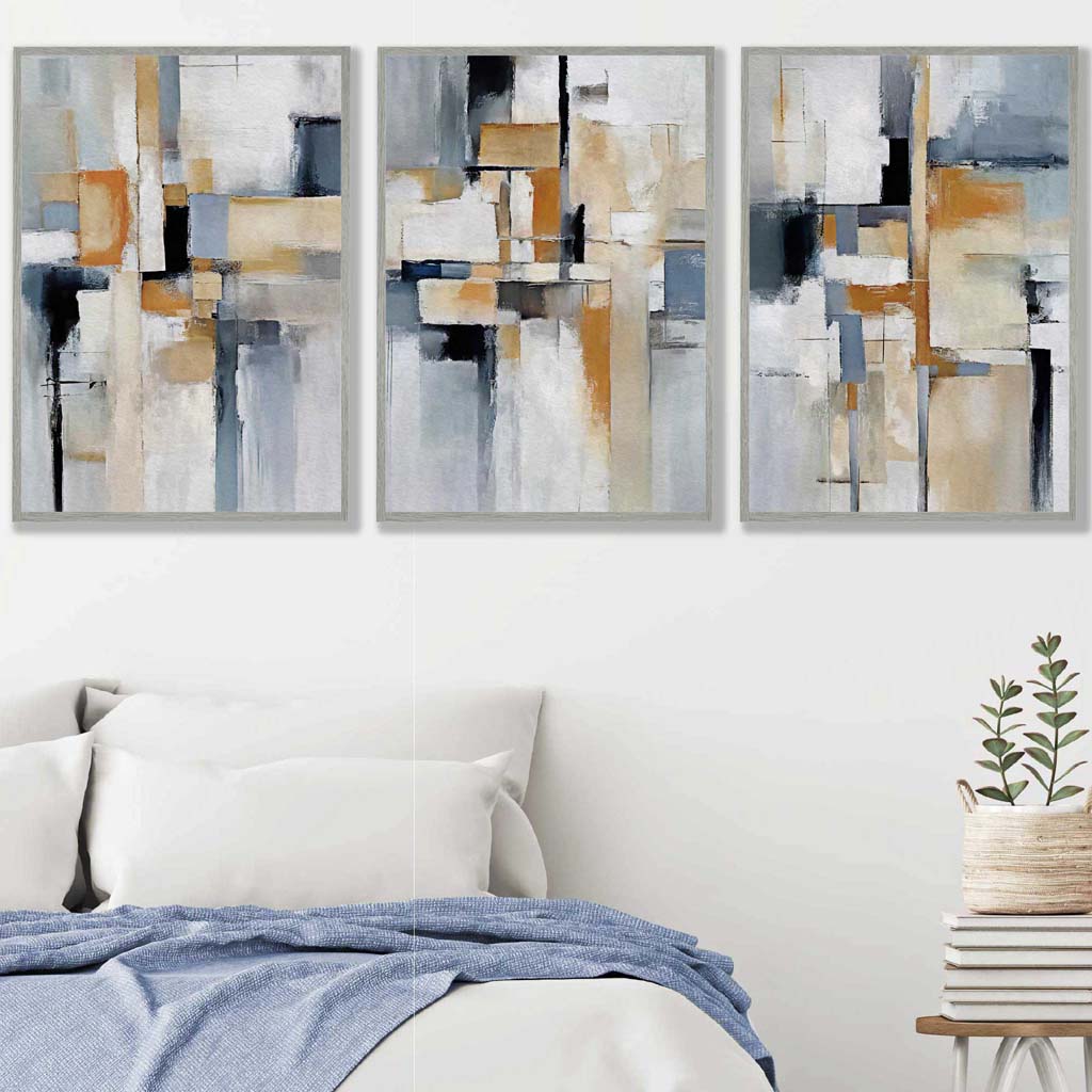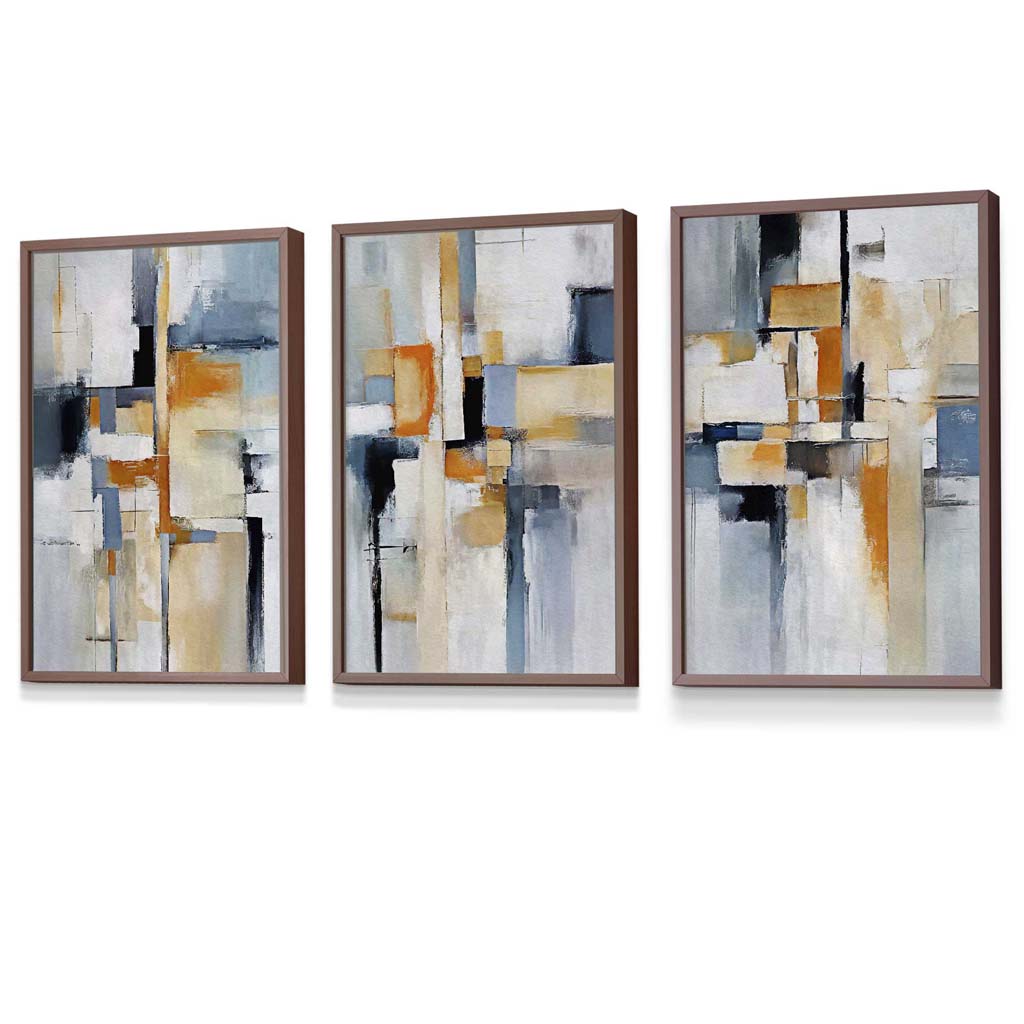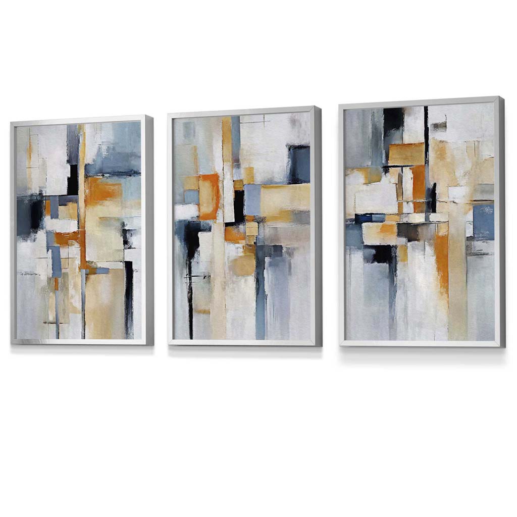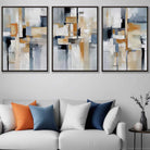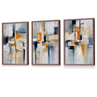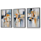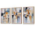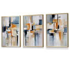 Set of 3 Abstract Blue and Orange on Beige Framed Wall Art