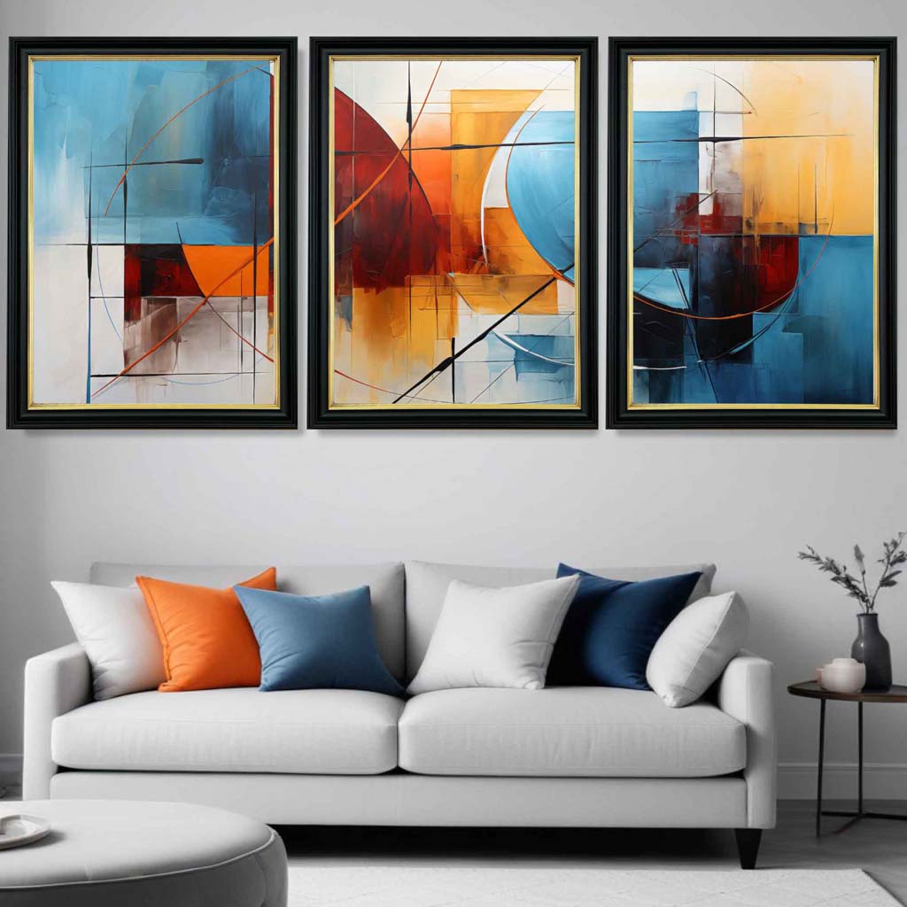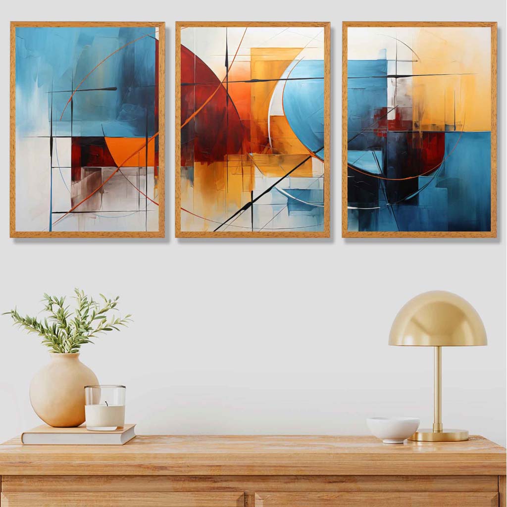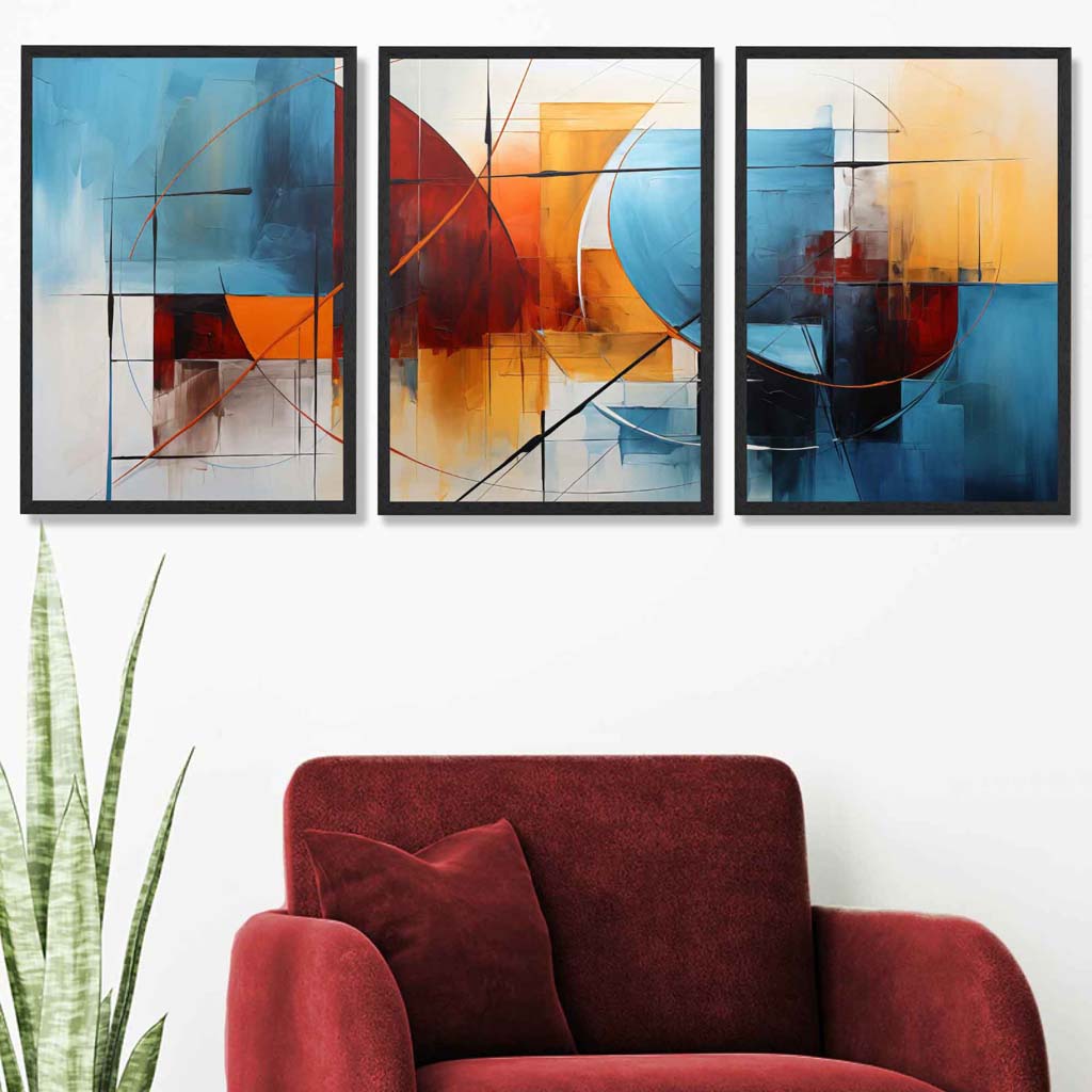Set of 3 Abstract Colourful Blue and Red Art Prints