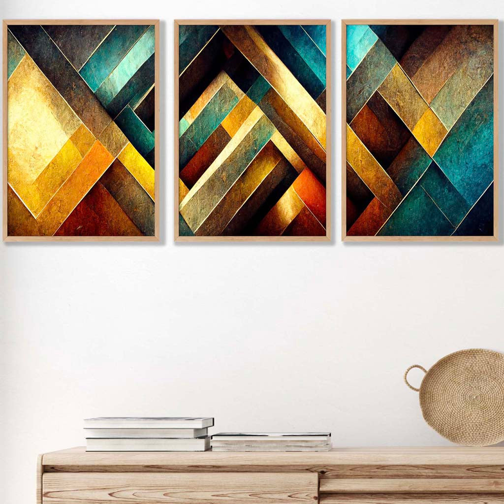 Set of 3 Abstract Mosaic Framed Wall Art Prints