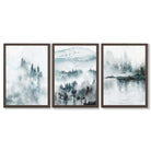 Teal Blue Abstract Forest Lake Set of 3 Framed Wall Art