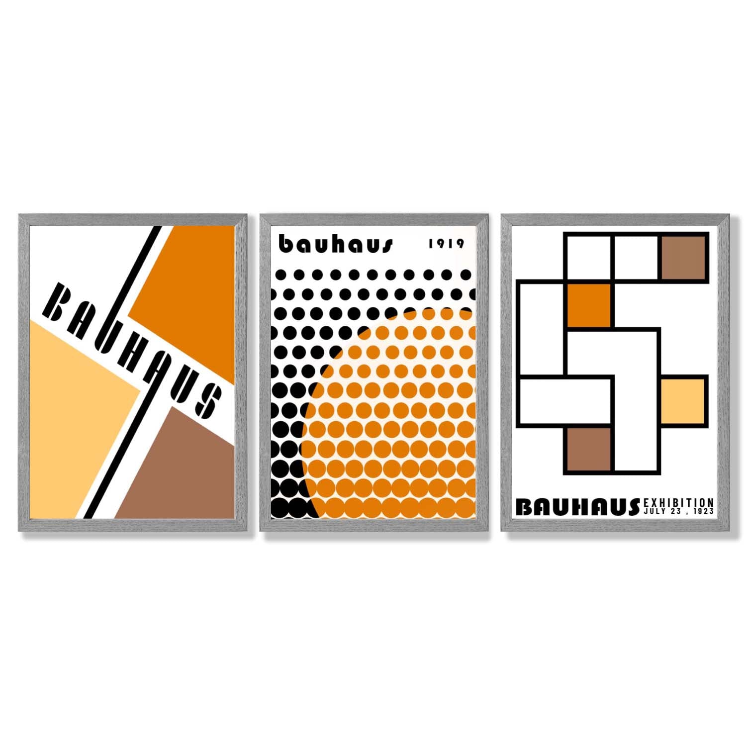 Set of 3 Bauhaus Orange Modern Framed Art Prints
