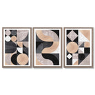 Set of 3 Black and Beige Mid Century Framed Art Prints