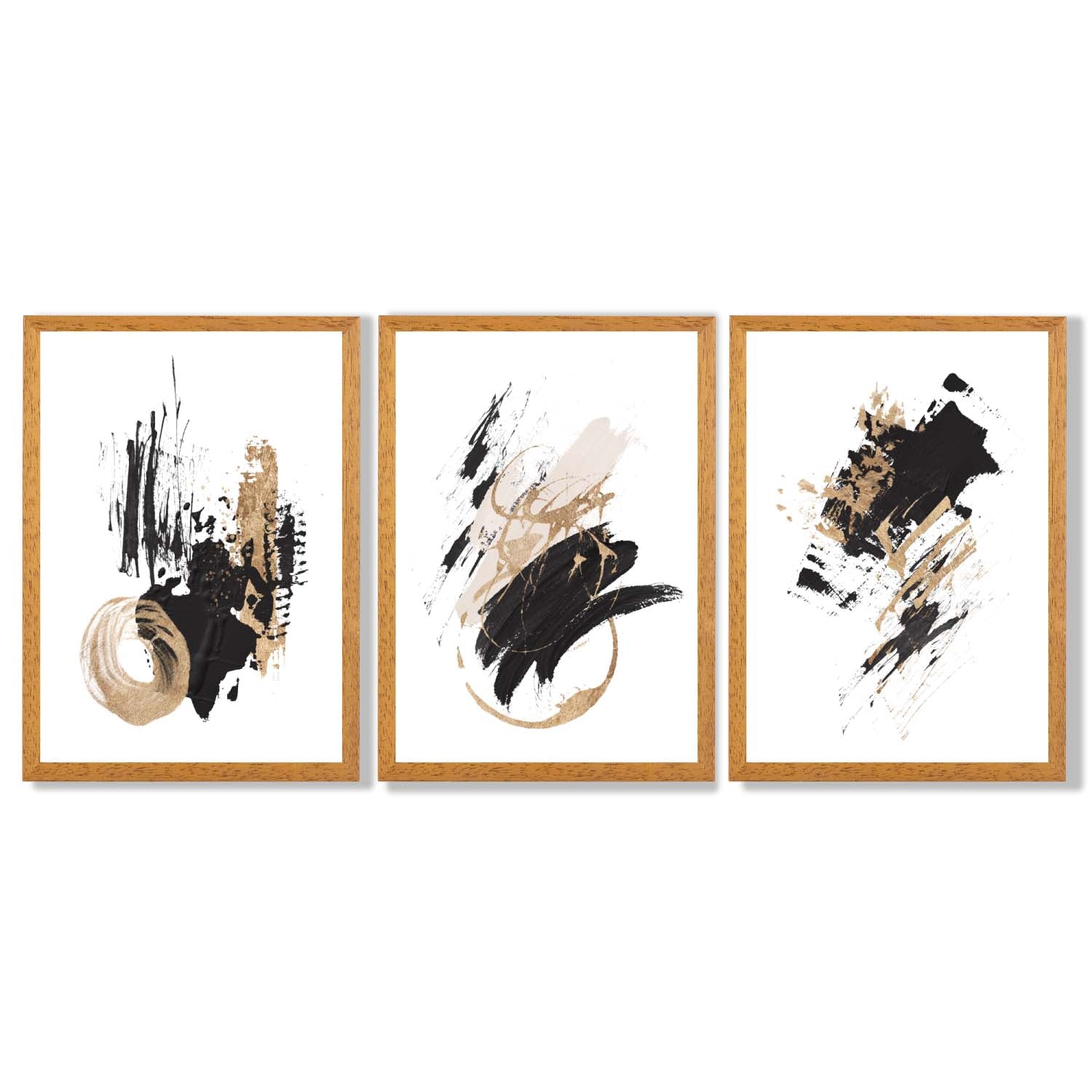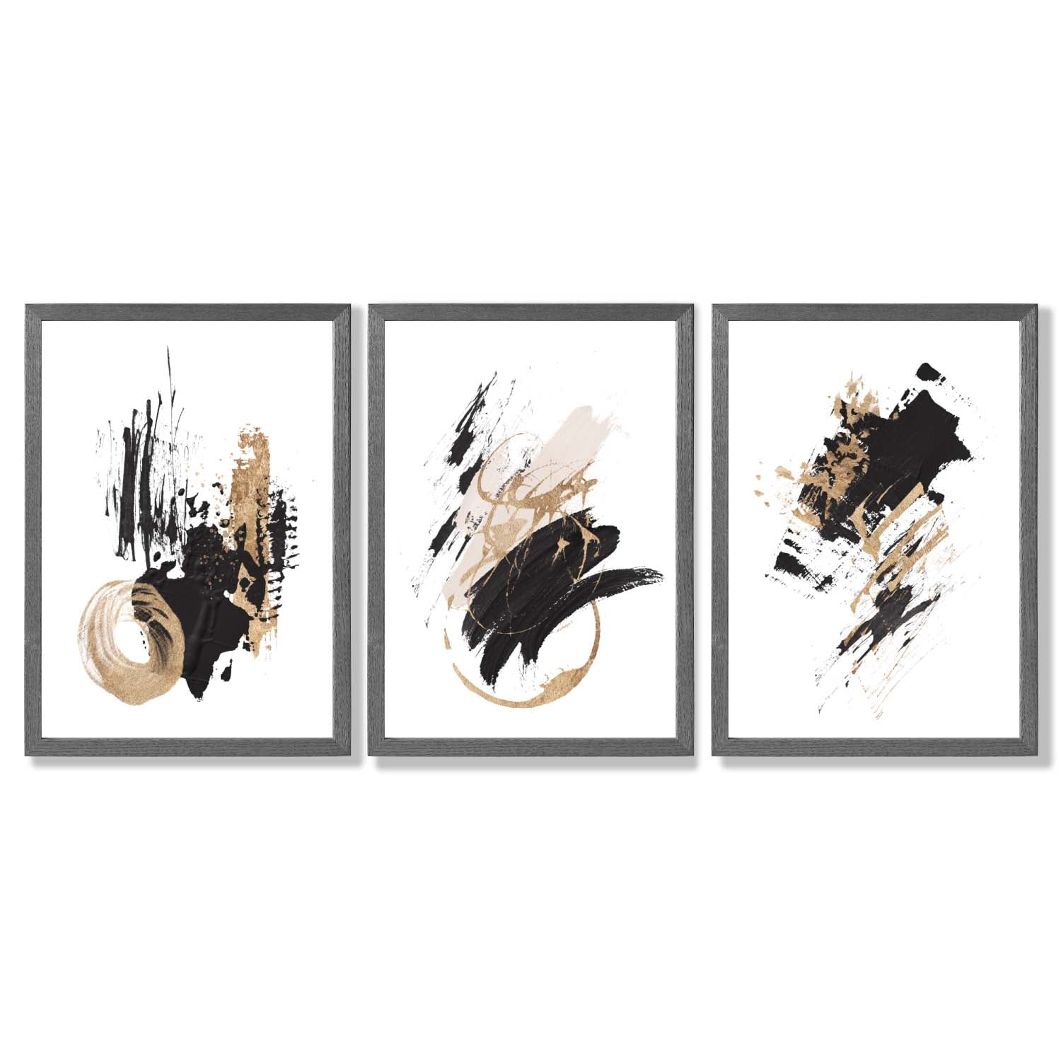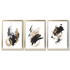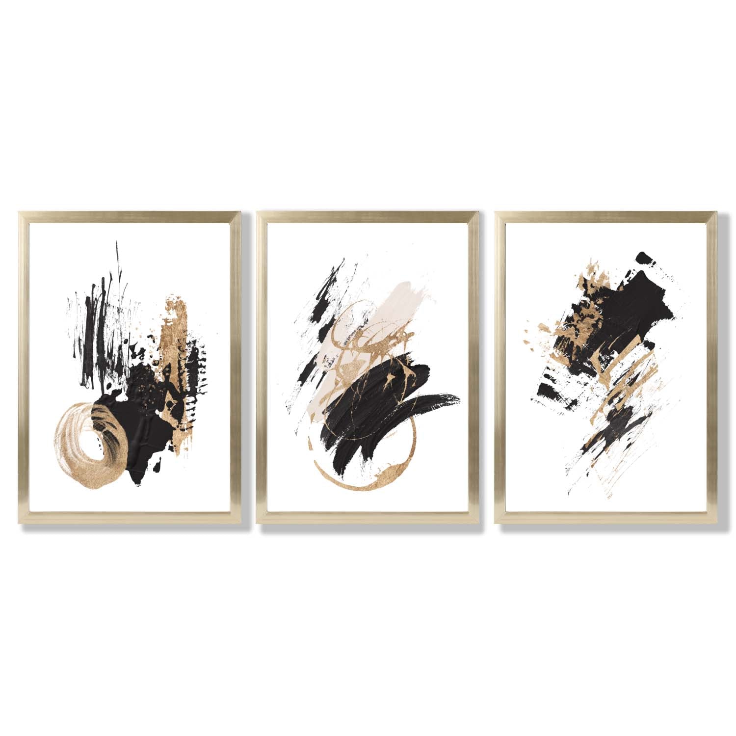Set of 3 Black and Gold Prints of Abstract Oil Paintings Framed Wall Art Prints