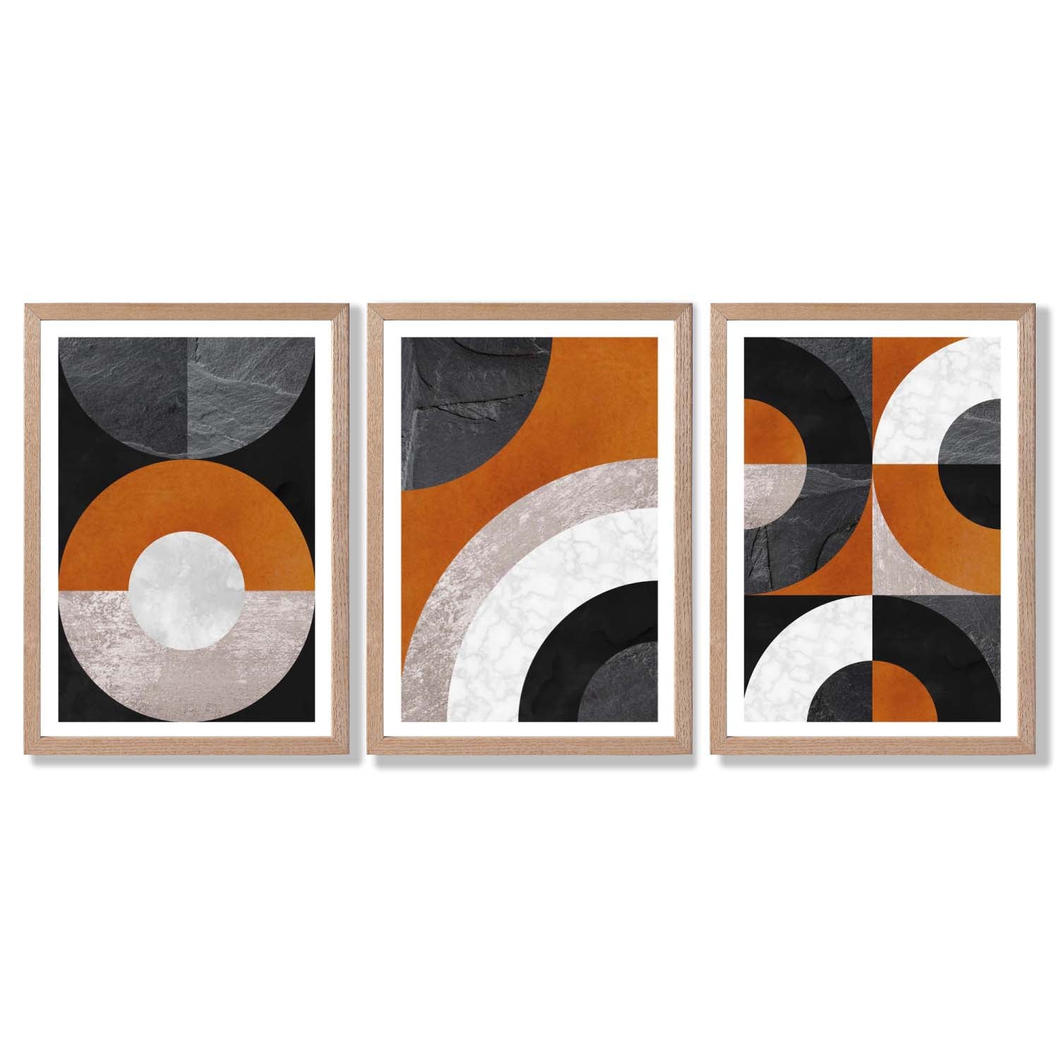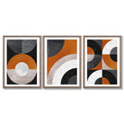 Set of 3 Black and Orange Abstract Circles Framed Art Prints