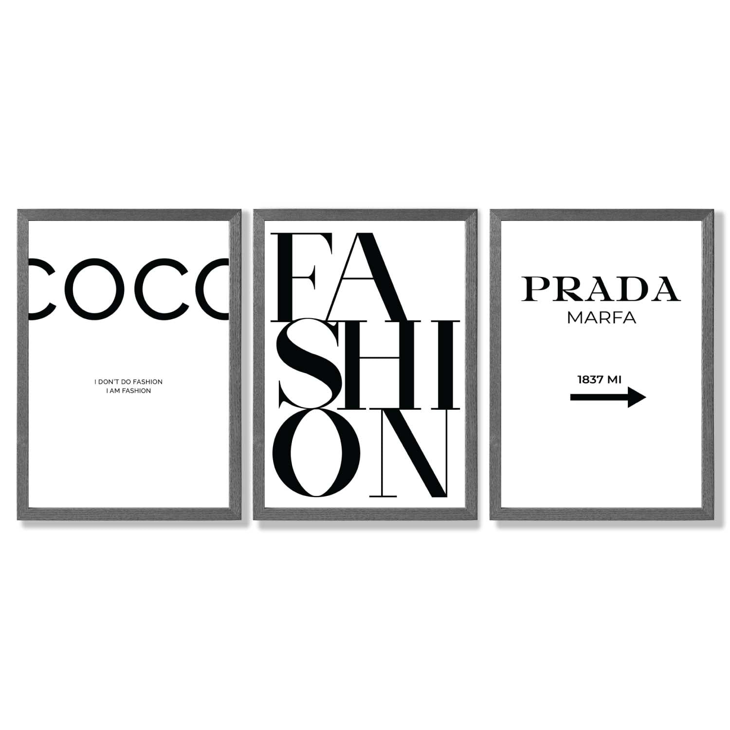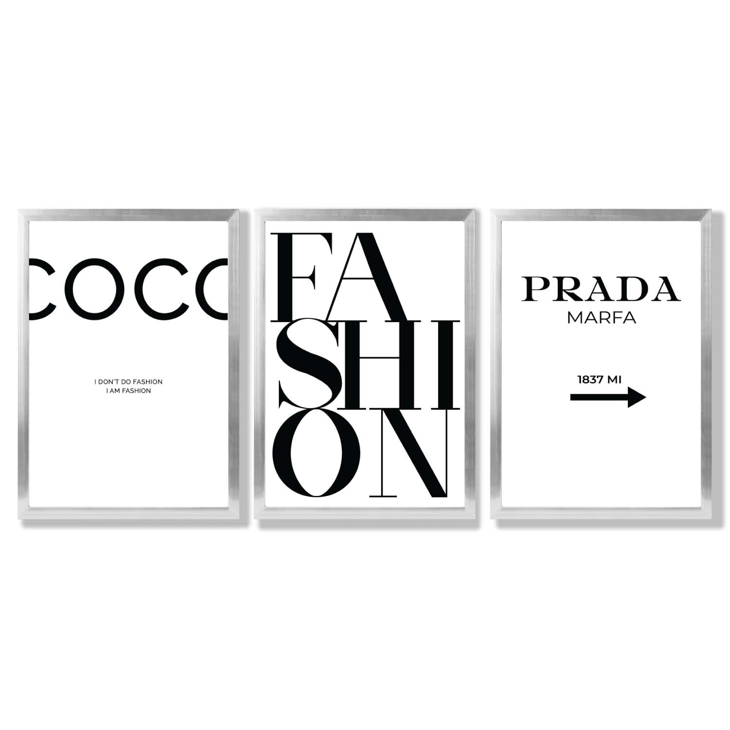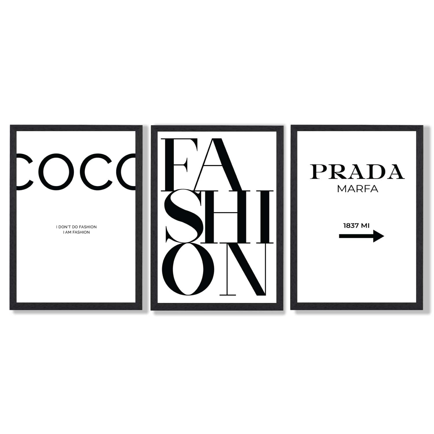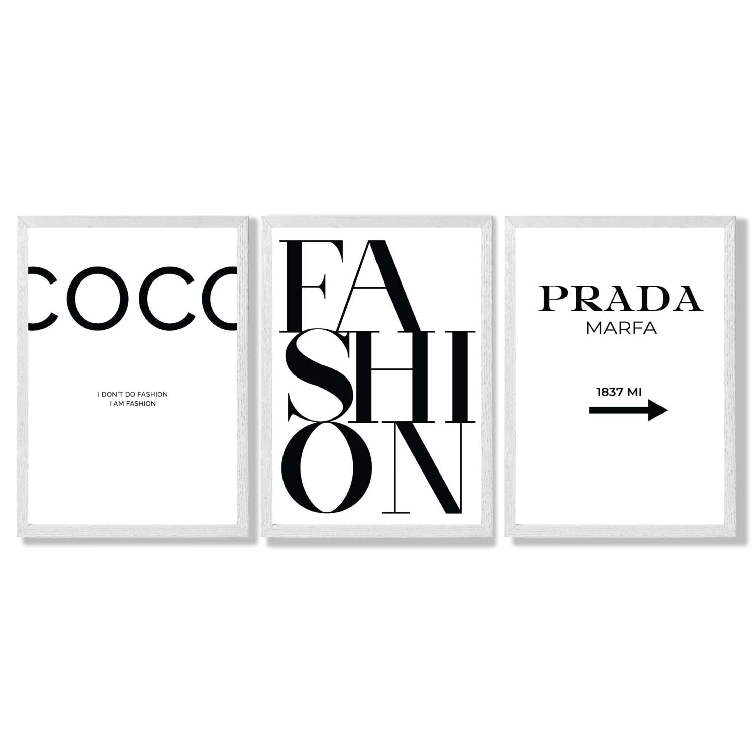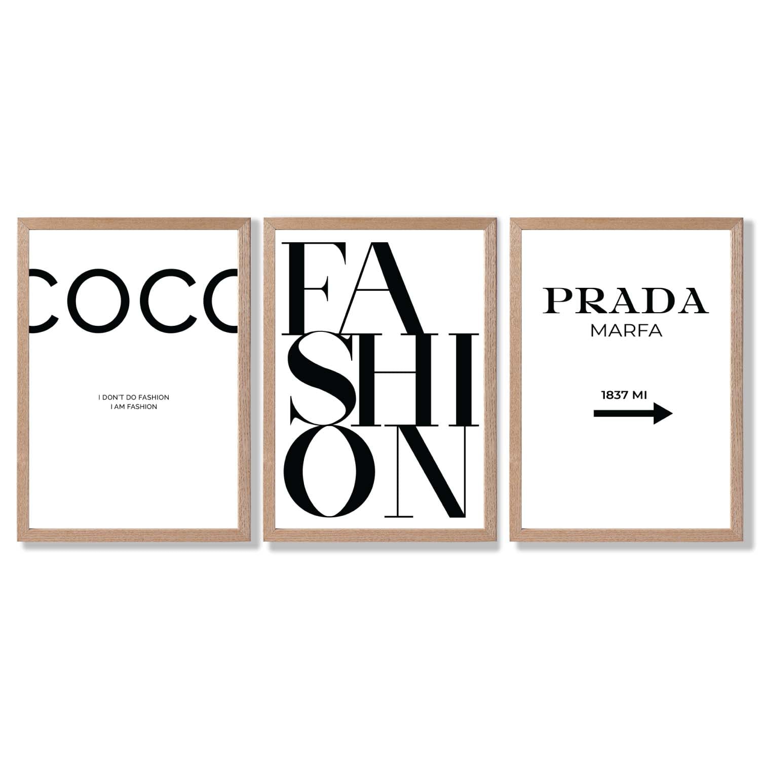 This set includes 3 framed art prints featuring fashion-related quotes from industry icon Coco Chanel, including "I don't do fashion, I am fashion." The prints also incorporate Marfa and stylish typography, making them the perfect addition to any fashion-forward gallery wall.