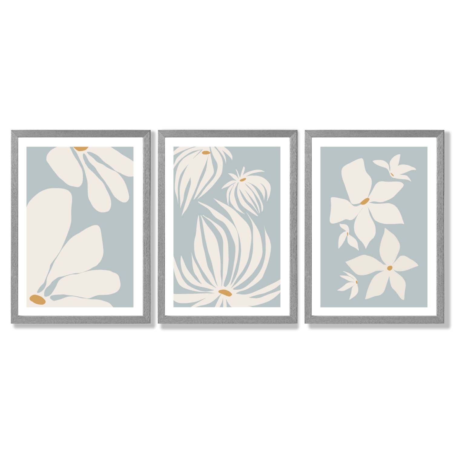 Set of 3 Blue Floral Modern Framed Art Prints