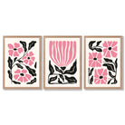 Set of 3 Boho Pink Black Floral Framed Art Prints