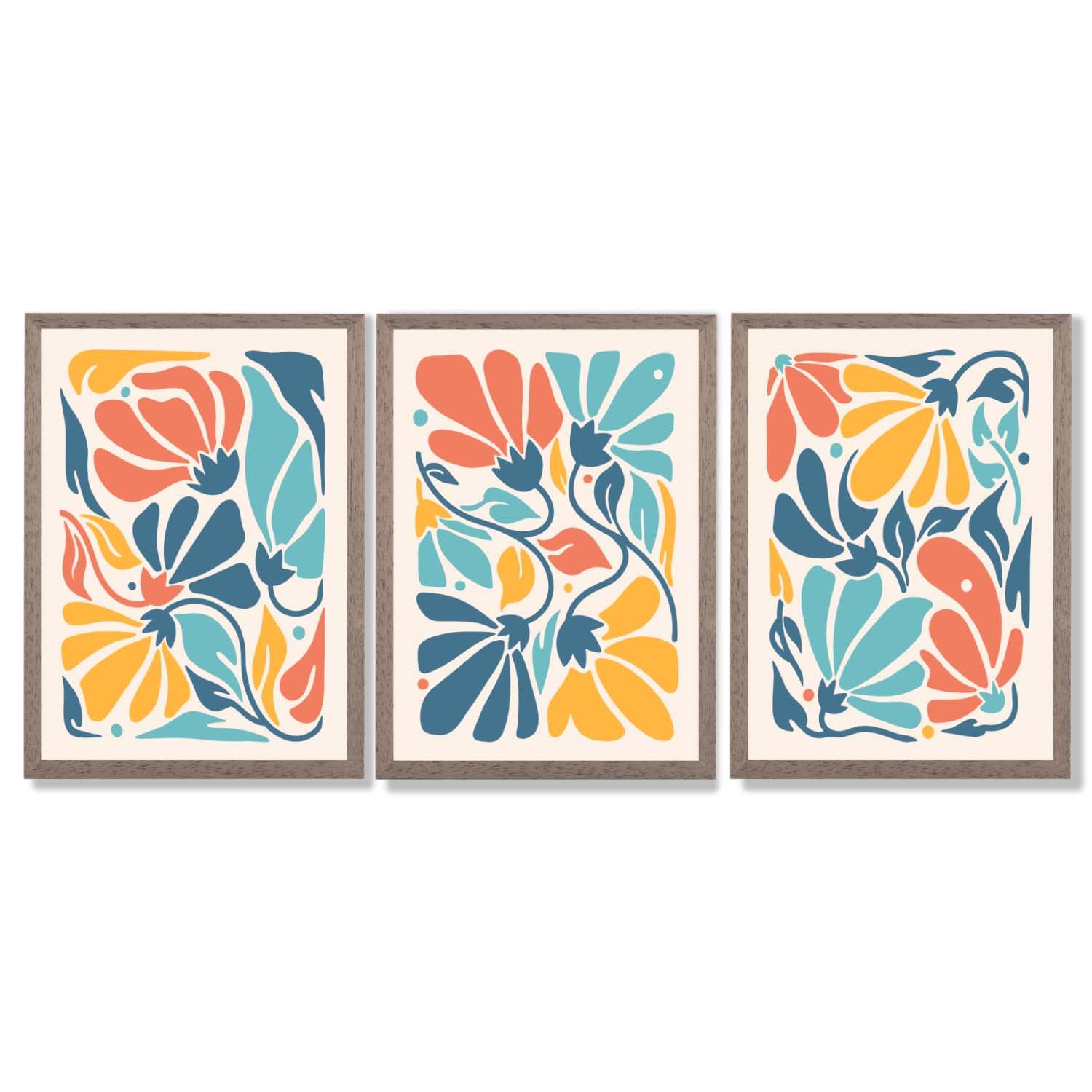 Introduce a touch of sophistication and elegance to your space with this Set of 3 Colourful Floral Framed Art Prints. Featuring vibrant shades of orange, blue, and yellow, these prints will add a pop of colour to any room. Each print is beautifully framed, making them a luxurious addition to your home decor.