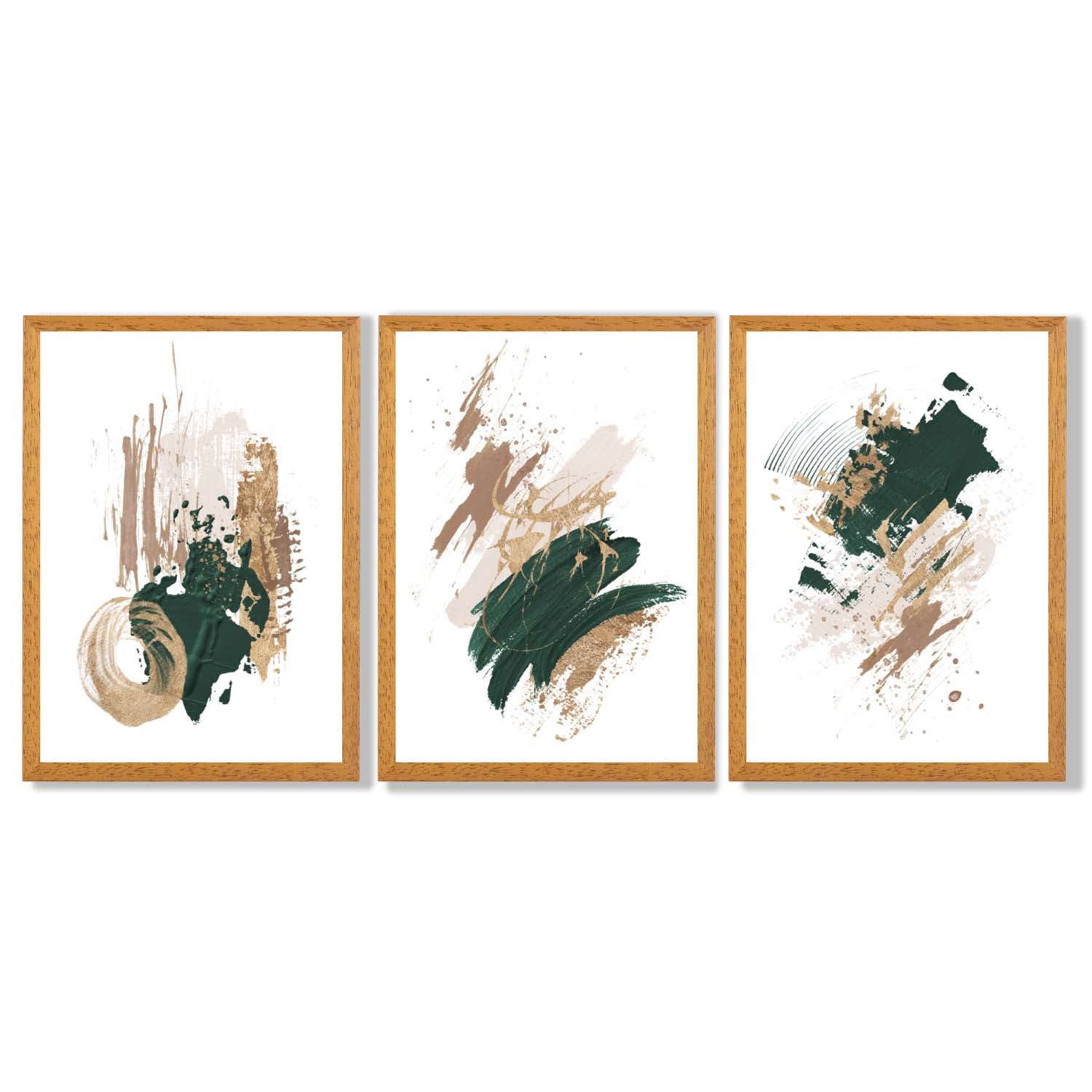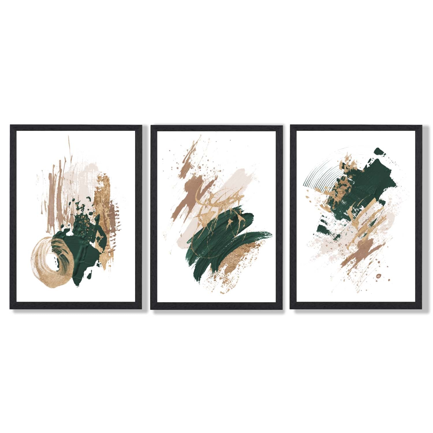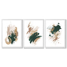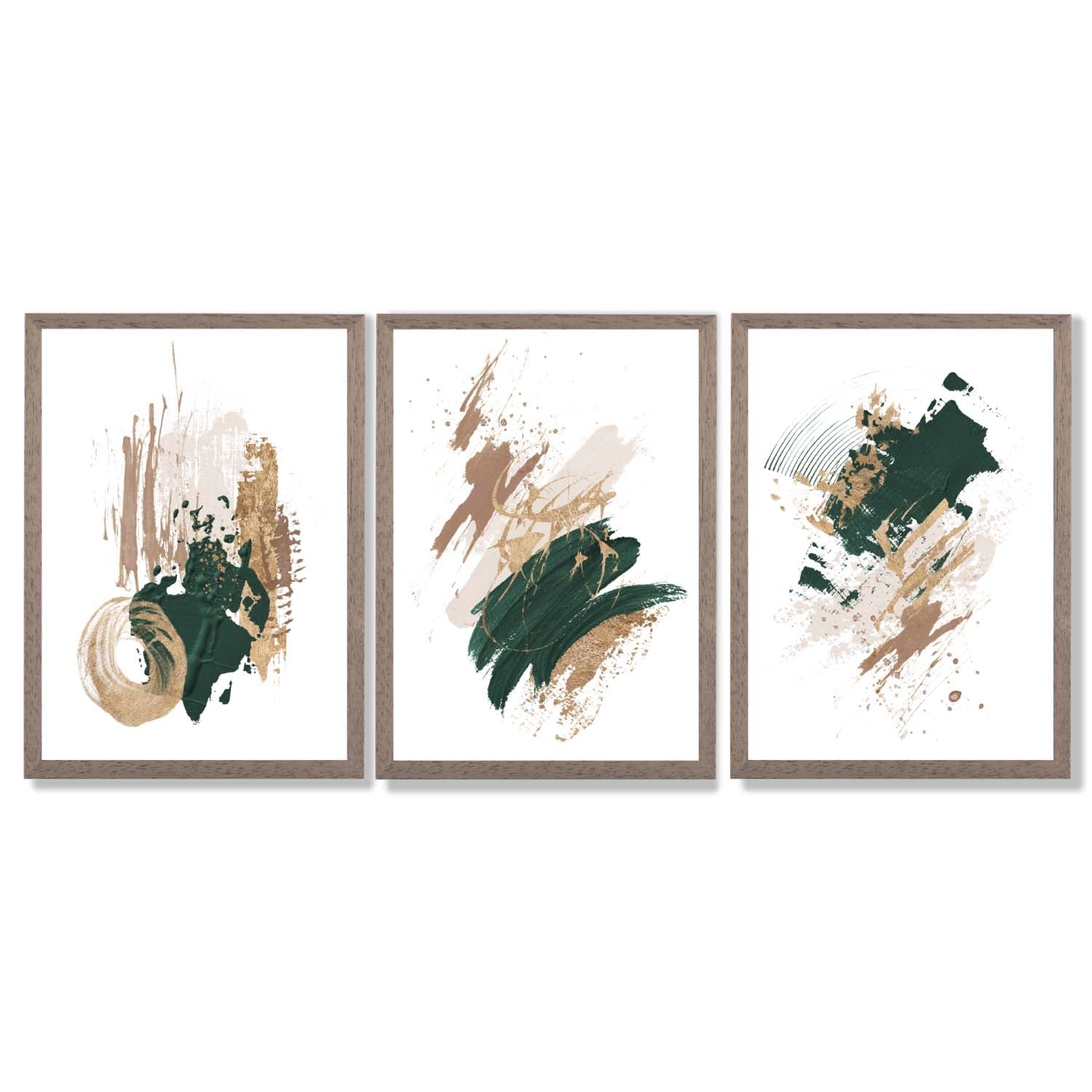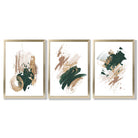 Set of 3 Green, Beige and Gold Prints of Abstract Oil Paintings Framed