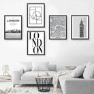 Set of 5 LONDON Art Prints cityscape, Skyline Street Map Big Ben Wall Pictures Posters Artwork Perfect Gift