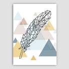 Set of 5 Scandinavian GEOMETRIC Multi Blue Pink Yellow & Beige Art Prints Heart Star Feather