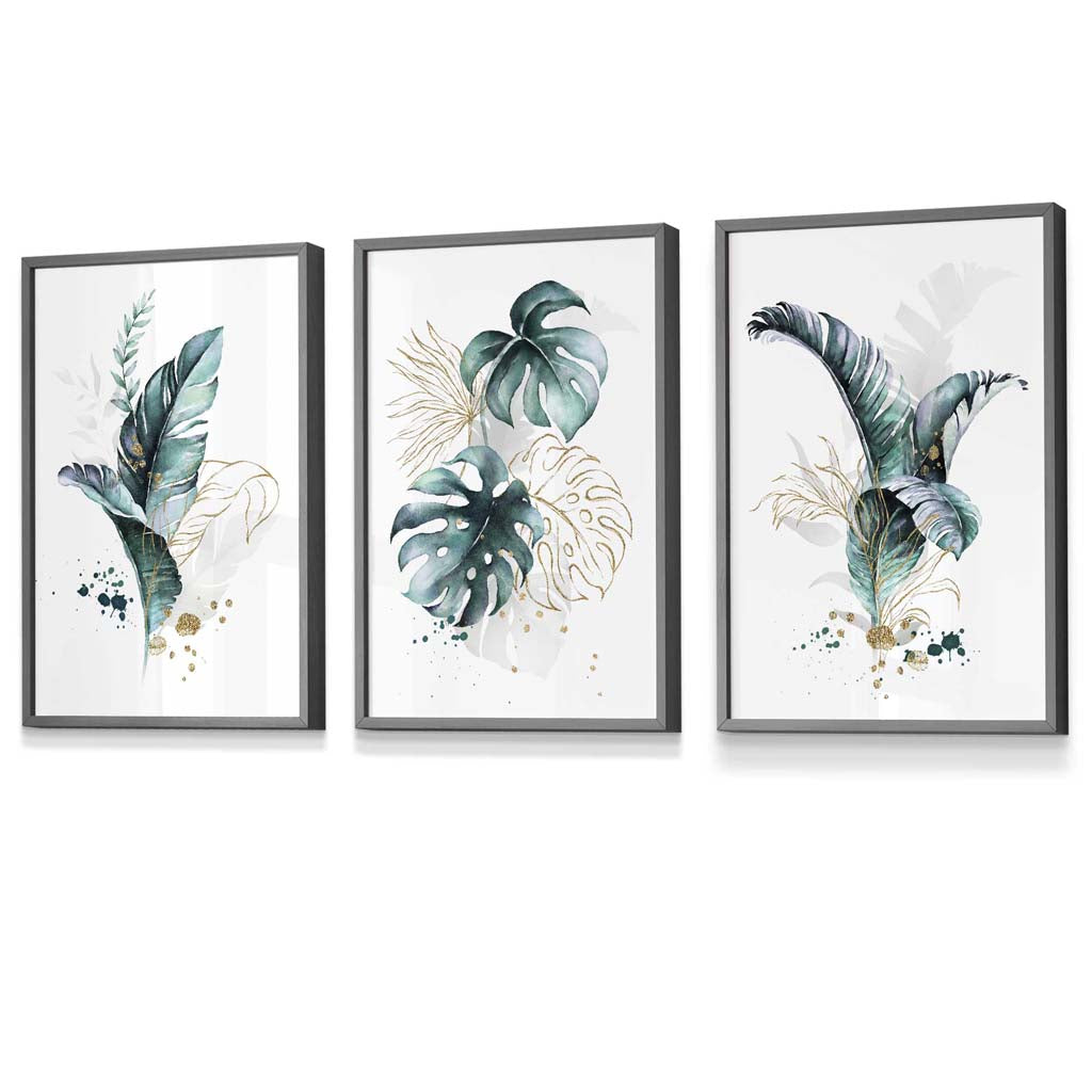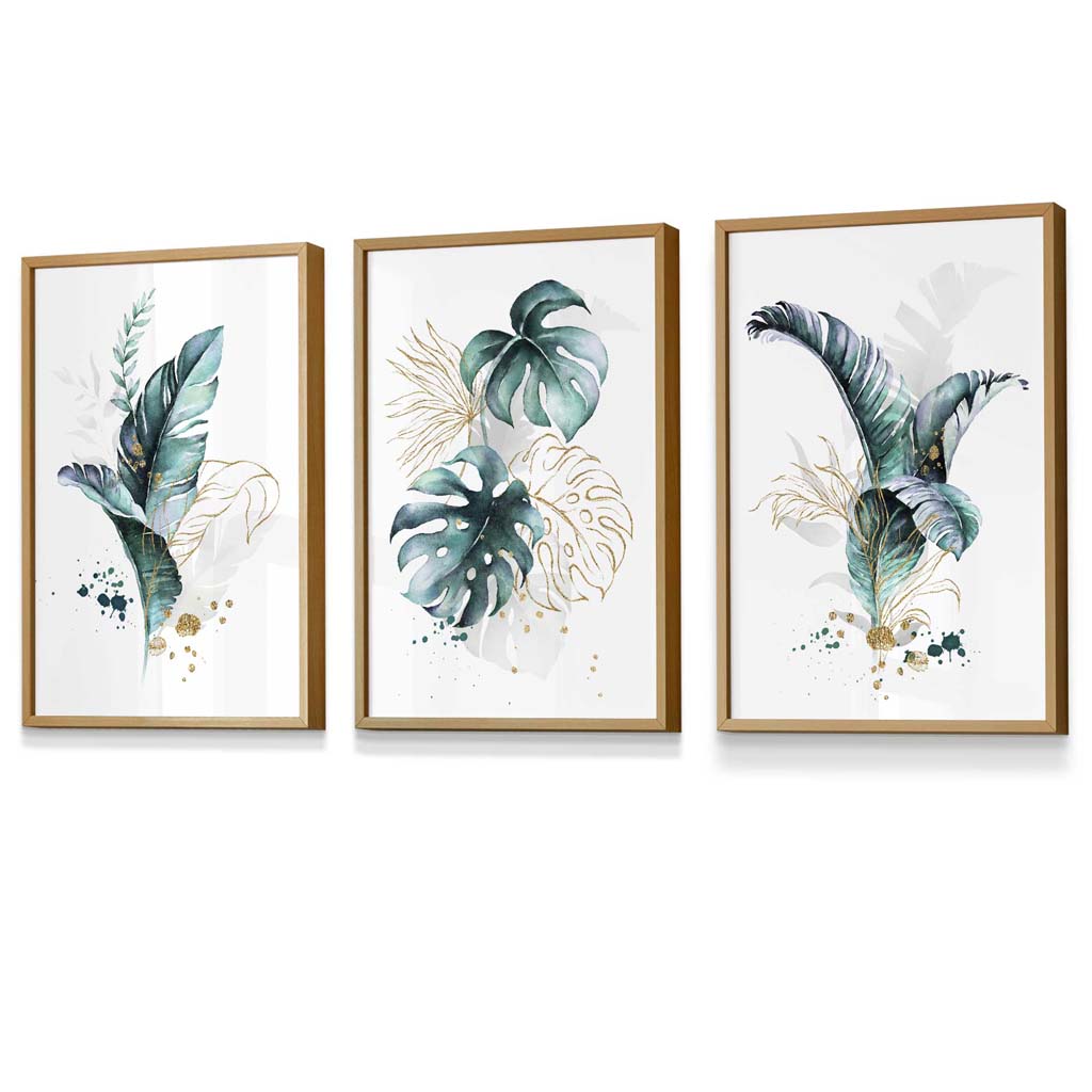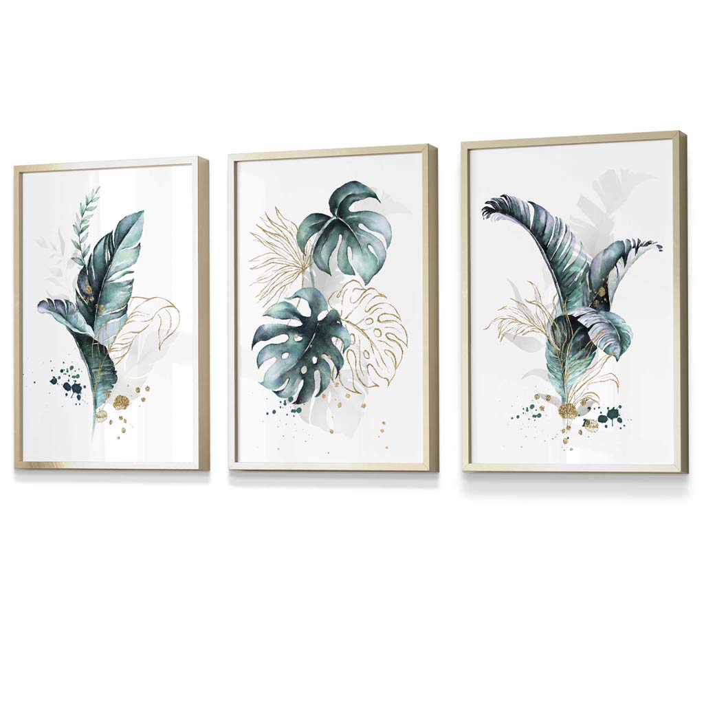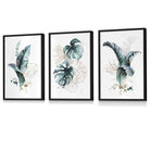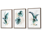 Teal Blue and Gold Botanical Set of 3 Floral Framed Prints