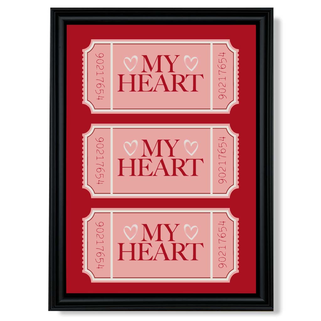 Experience the power of love with our Ticket to my Heart Love Framed Art Print. This beautifully crafted piece captures the essence of love and will inspire strong emotions in any viewer. Hang it in your home to add a touch of passion and warmth to your space. A perfect gift for your special someone or anyone who believes in the magic of love!