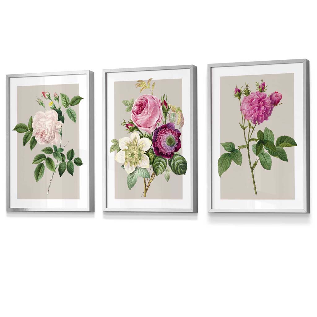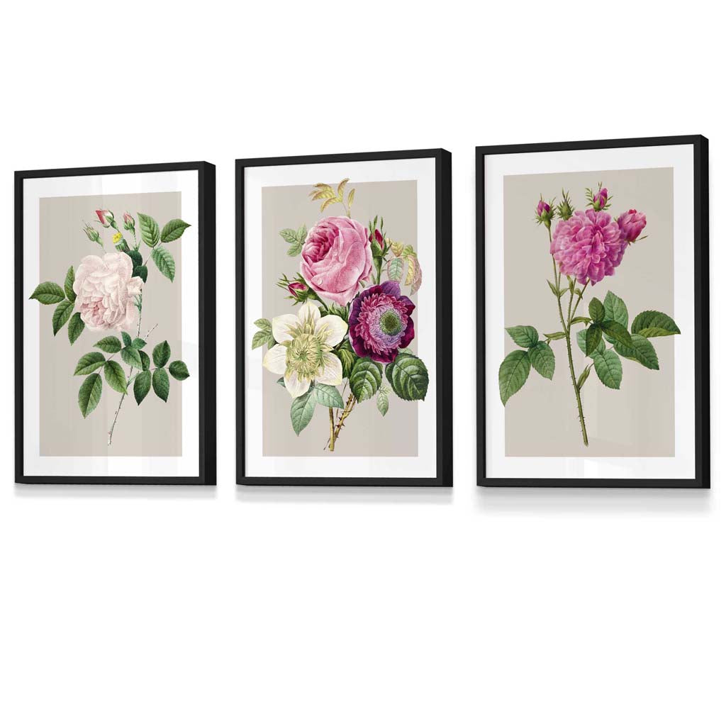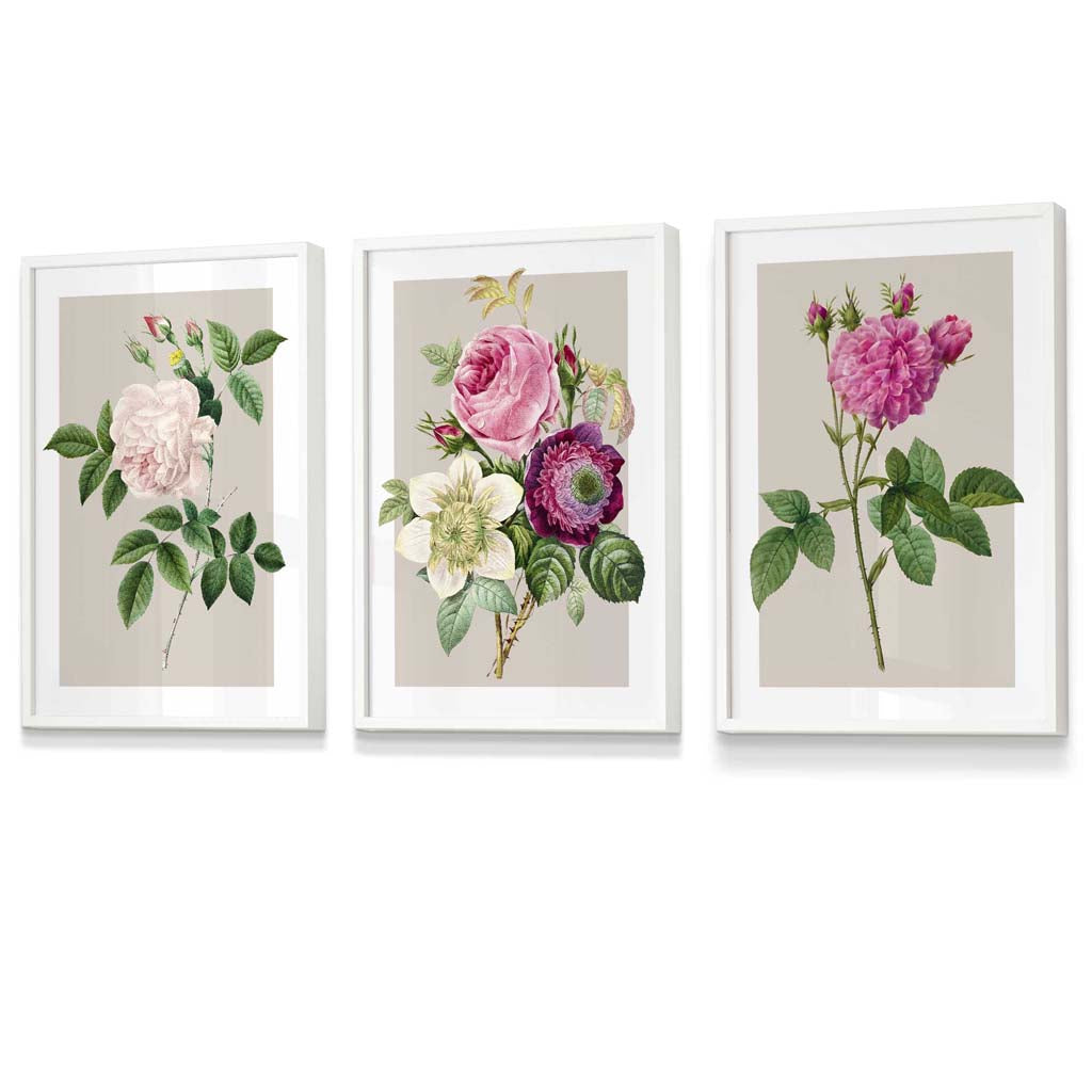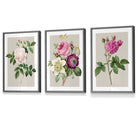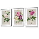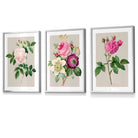 Vintage Pink and White Roses Set of 3 Framed Prints