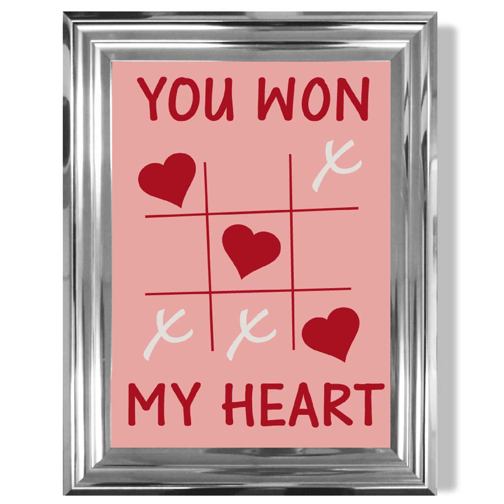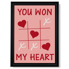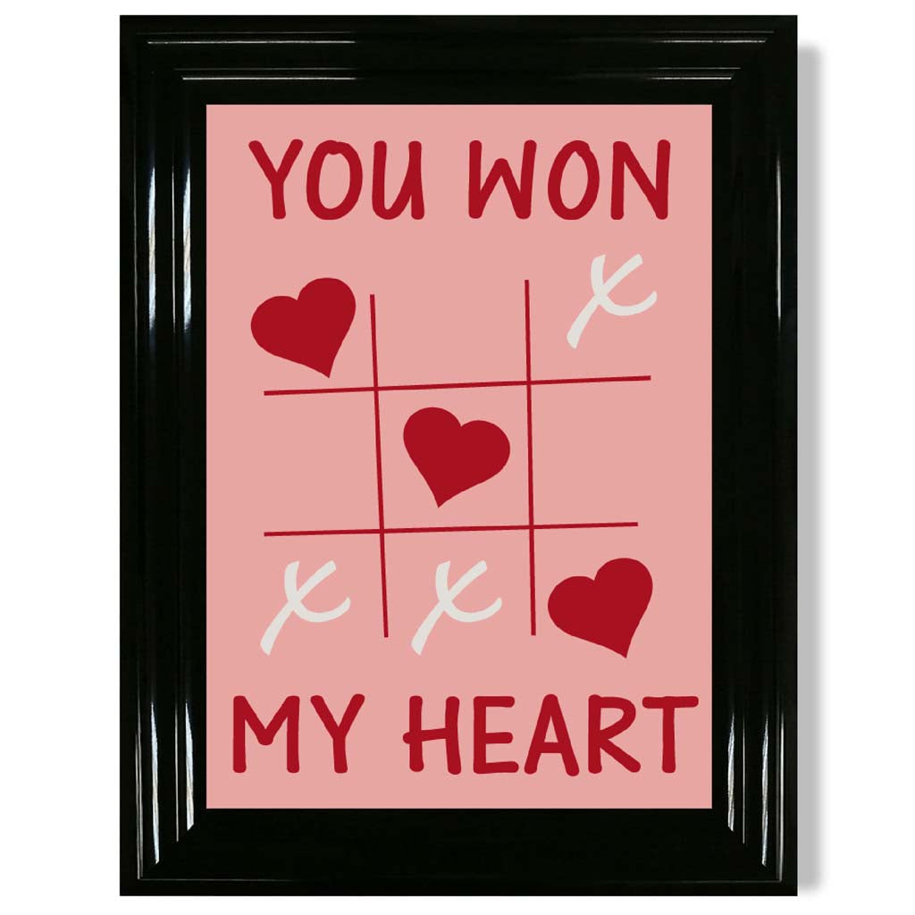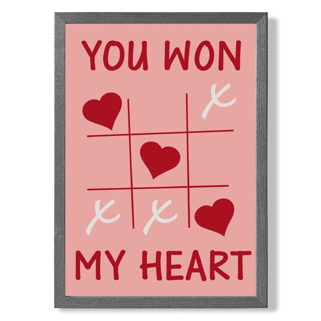 Express your love with the You Won My Heart Framed Art Print! This stunning piece, designed in a Tic Tac Toe style, makes the perfect Valentine's Day or anniversary gift. Display it in any room for a daily reminder of your love.