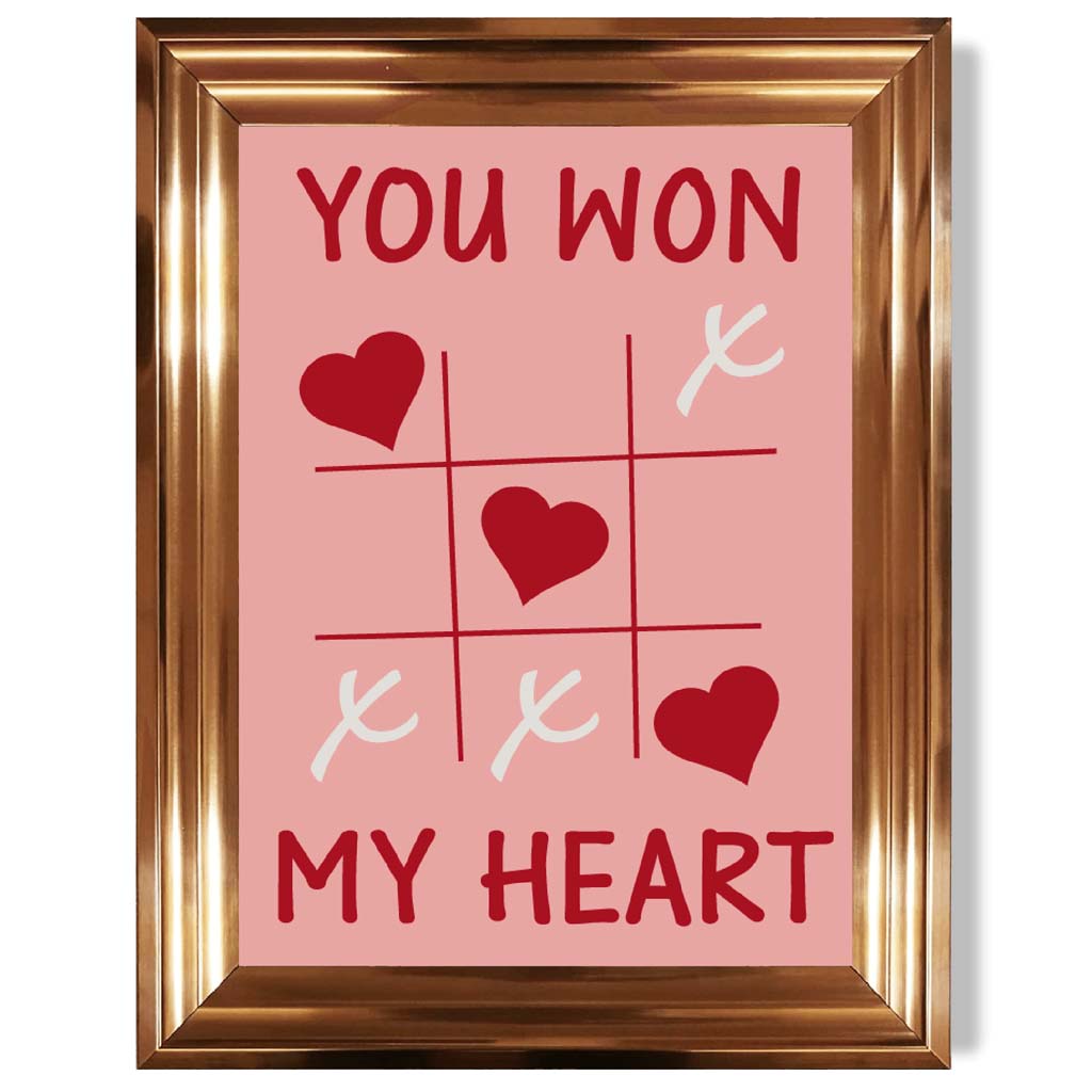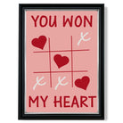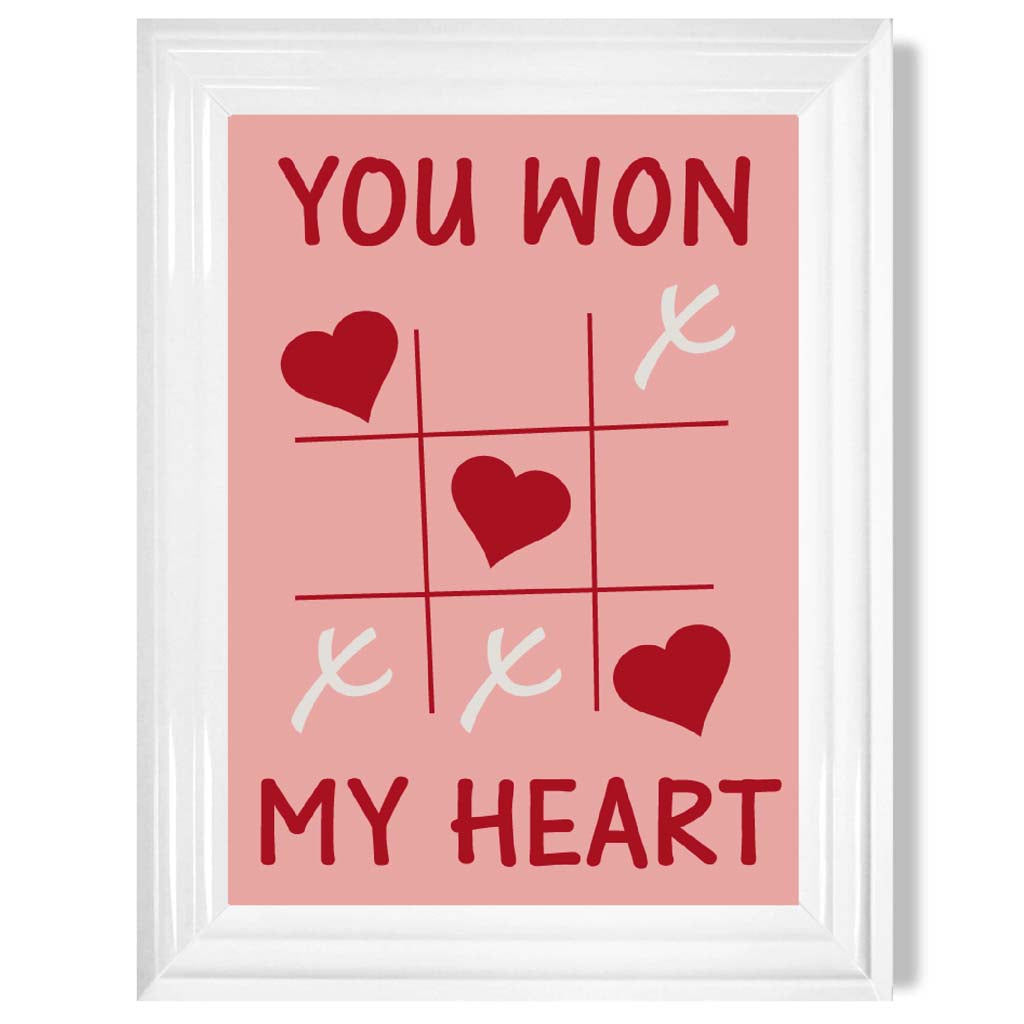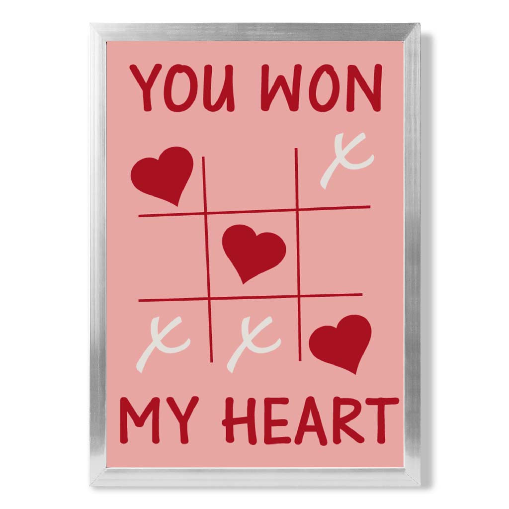 Express your love with the You Won My Heart Framed Art Print! This stunning piece, designed in a Tic Tac Toe style, makes the perfect Valentine's Day or anniversary gift. Display it in any room for a daily reminder of your love.