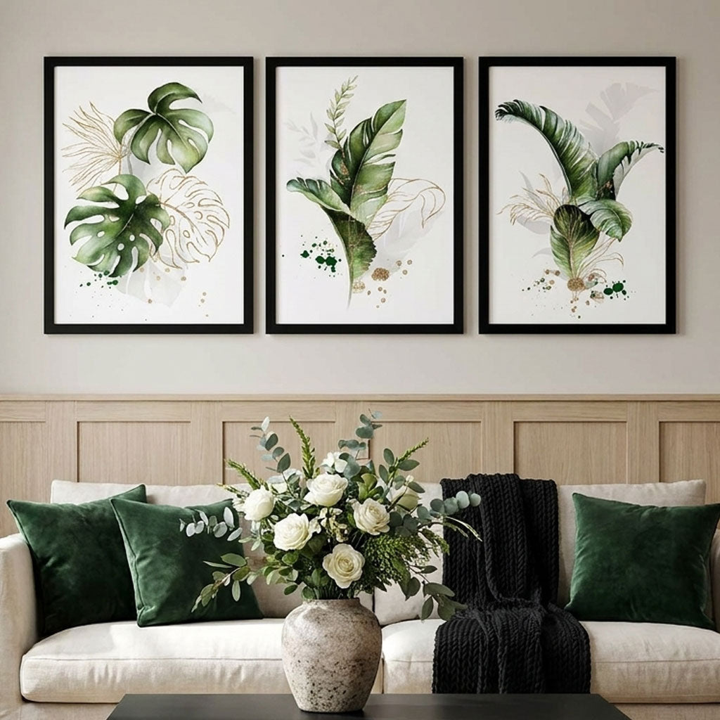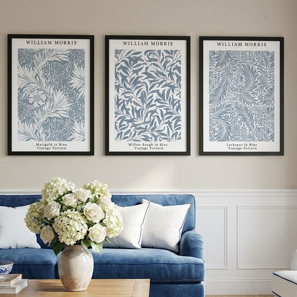 Set of 3 Framed Prints size guide scaled with Sofa for reference to help when choosing wall art to fit your living or workspace interior decor schemes. Includes total wall space required for each size. Simply measure your available Space and choose the size that best fits your available wall space.