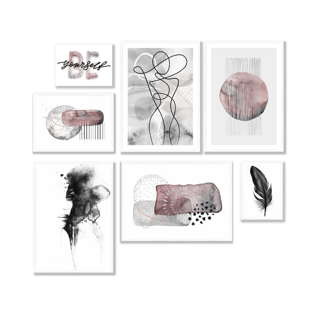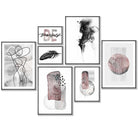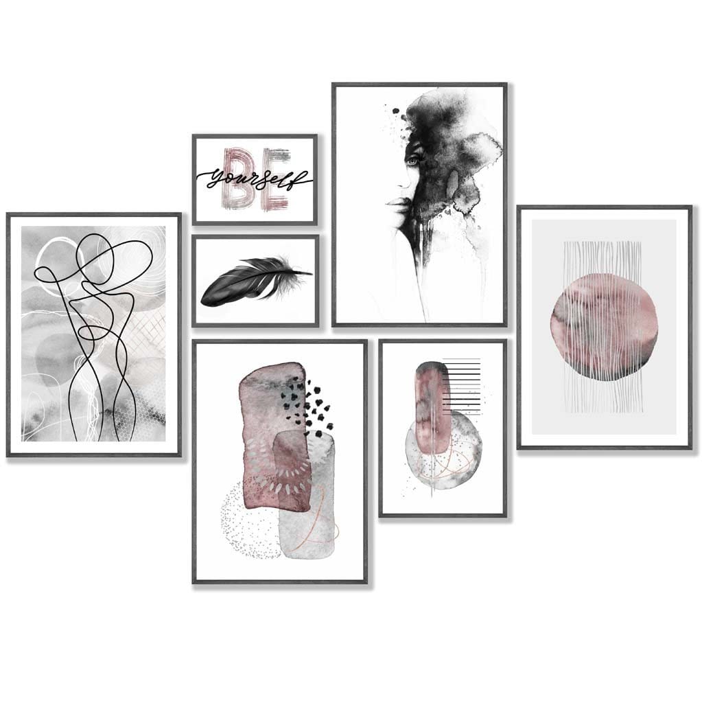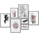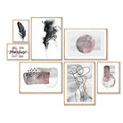 Set of 7 Abstract Blush Pink and Grey Fashion Art Gallery Wall Art Prints