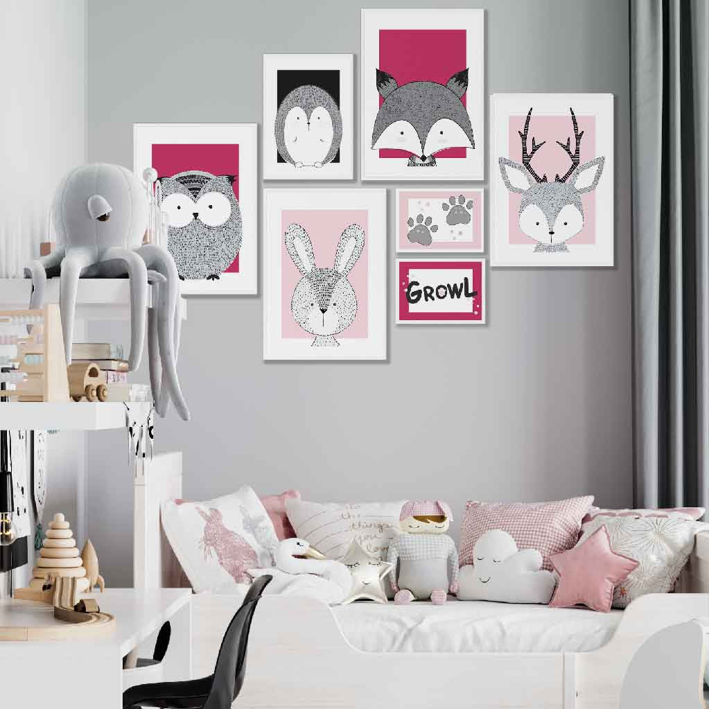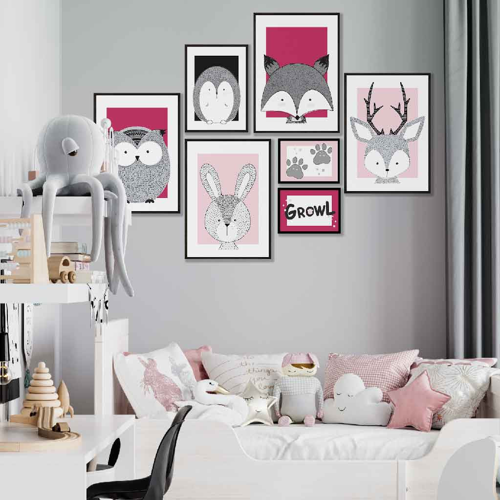 We offer frames to fit all of our wall art prints, including in our popular wall art in sets of 3 where you’ll find a set of prints to create beautifully coordinated wall decor. You can get our pink artwork framed in black, white, grey woodgrain, or oak woodgrain.