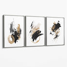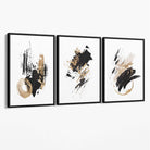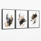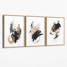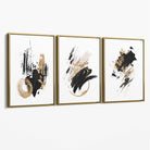 Abstract Black and Gold Set of 3 Minimal Canvas Wall Art