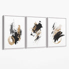 Part of our Abstract Oil Series, this Set of 3 Canvas Wall Art features Black and Ivory with Gold (Not Foil) Oil Paint Strokes. These Wall Art Prints work with many interior styles including Boho, Modern and Minimalist. Bring your space to life with this unique set of wall art pieces that mix timeless elegance with modern sophistication. Enjoy the versatility of these pieces — their abstract look and beautiful colours are sure to turn heads.