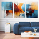 Set of 3 Abstract Colourful Blue and Red prints on Canvas