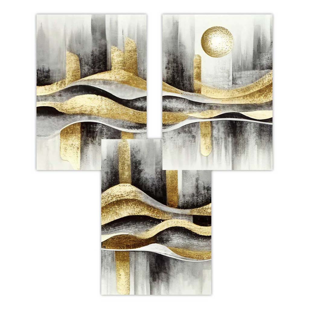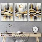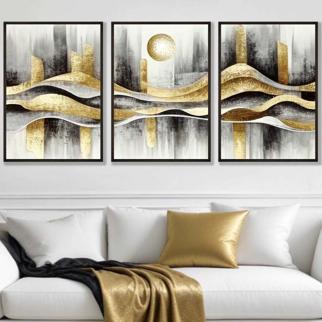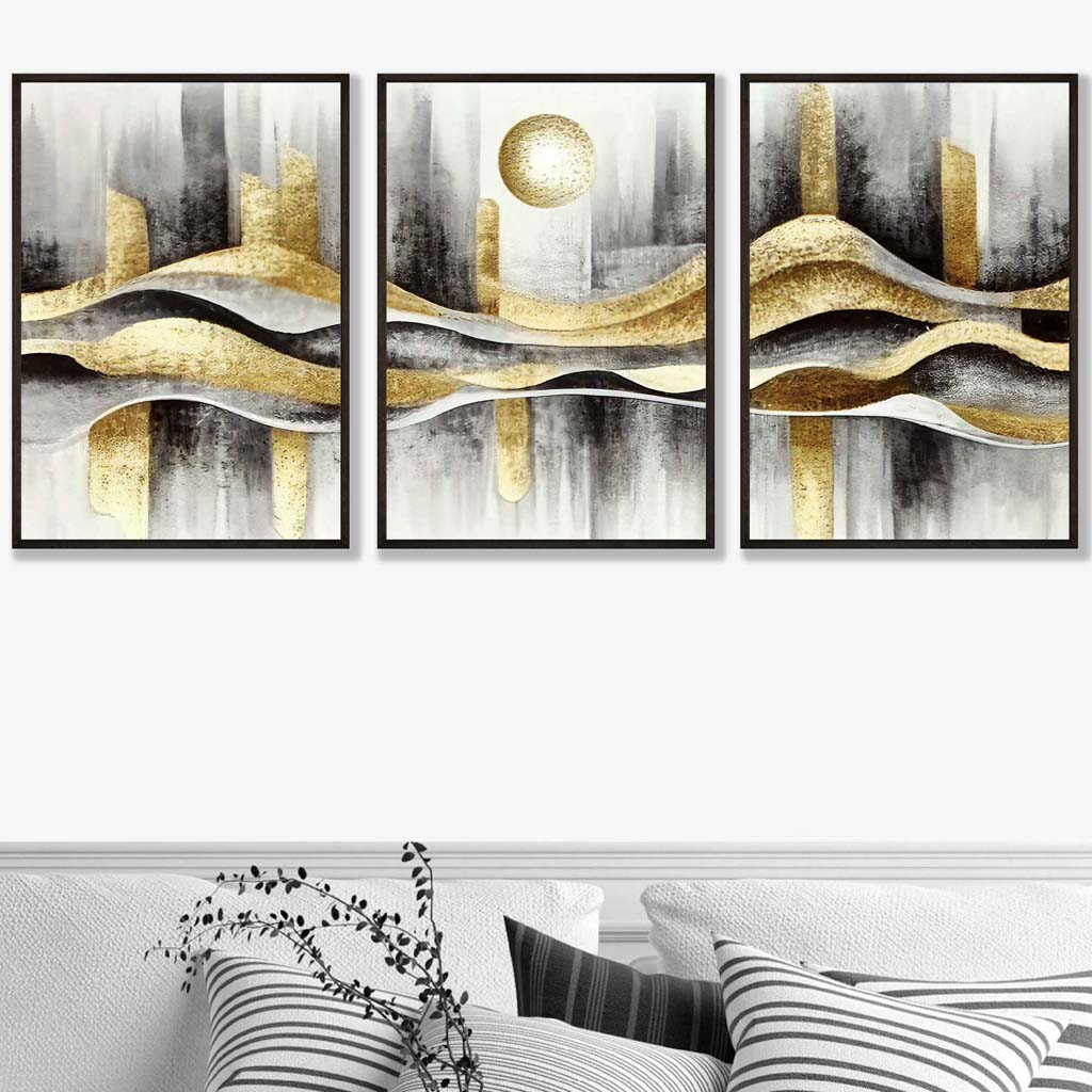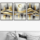 Abstract City Set of 3 Black and Gold Wall Art Prints