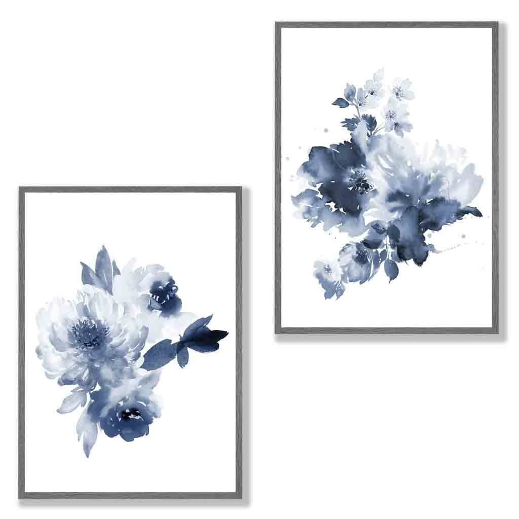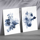 Set of 2 Navy Blue Watercolour Floral Wall Art Prints