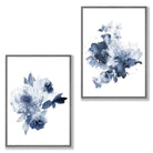 A Set of 2 Navy Blue Watercolour Floral Wall Art Prints.