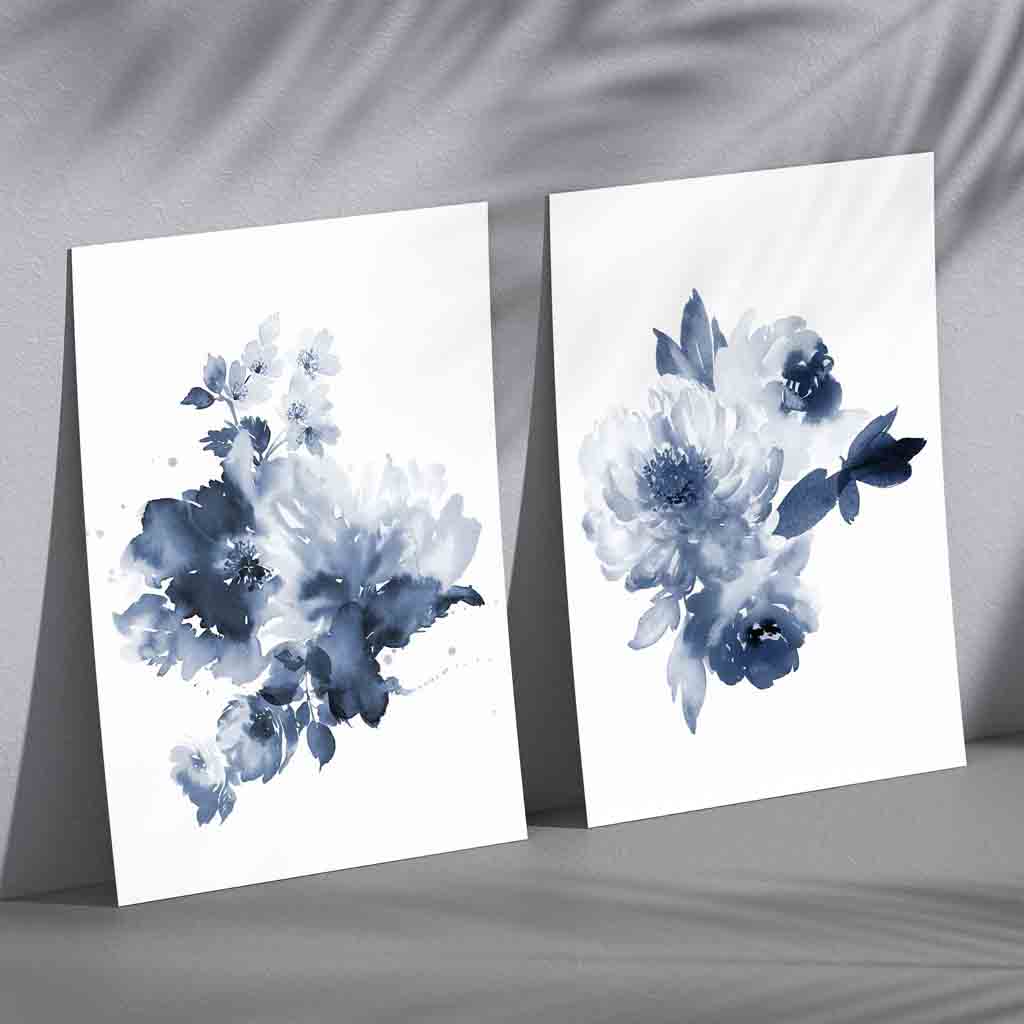 This elegant pair of navy blue watercolour floral wall art prints are perfect for adding a sophisticated, modern twist to any interior. The archival quality prints are printed on heavyweight matte paper for a luxurious look and feel. Add subtle style and visual texture to any space with this beautiful set of art prints.