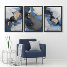 Set of 3 Abstract Art Prints of Paintings Navy Blue, Grey and Gold
