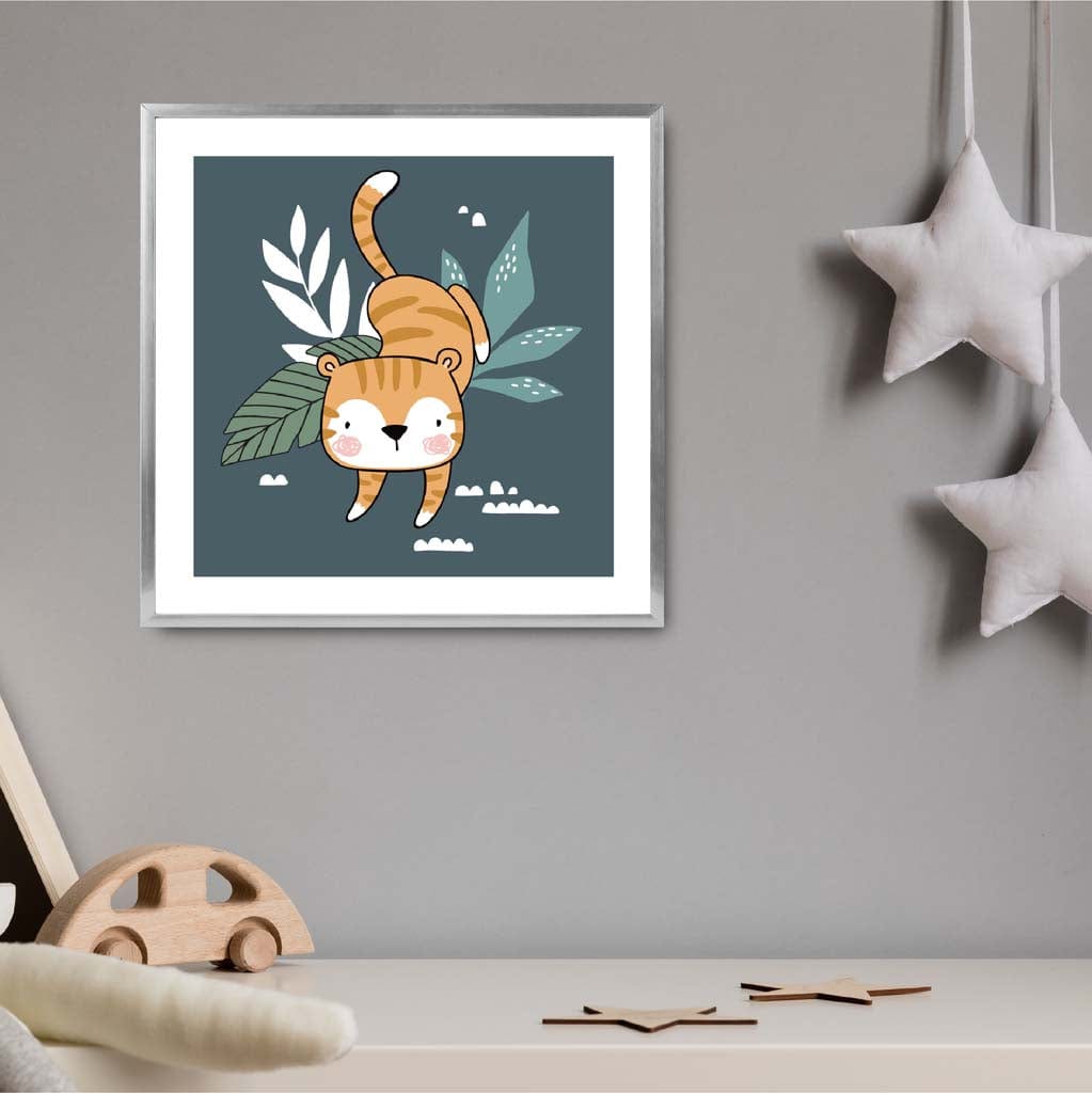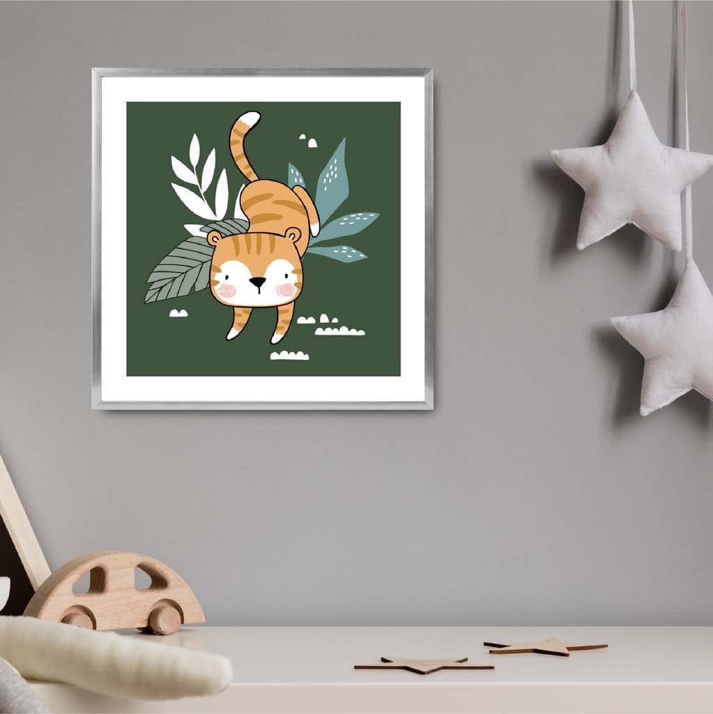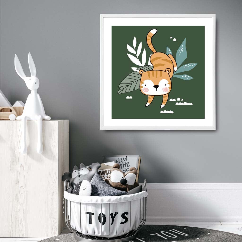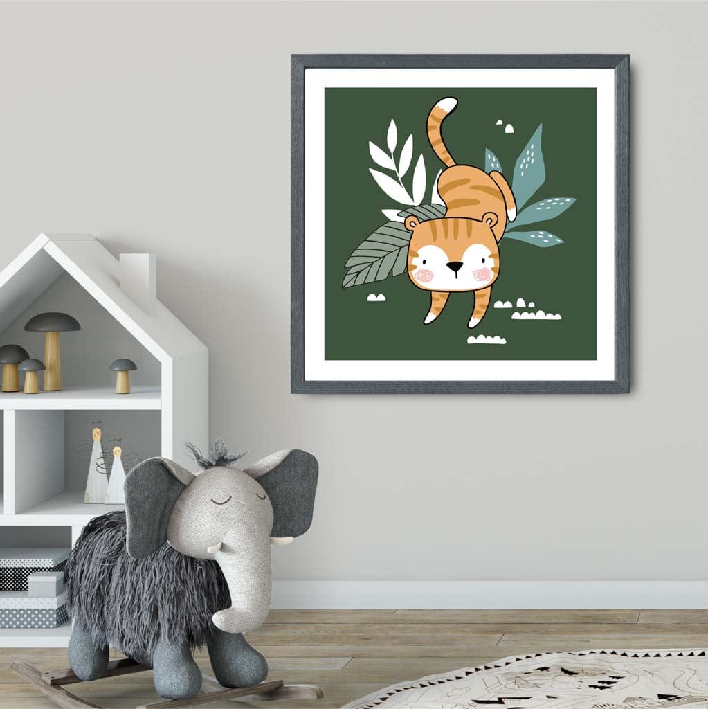 Cute Tiger FRAMED Print on Dark Green Jungle Kids Wall Art