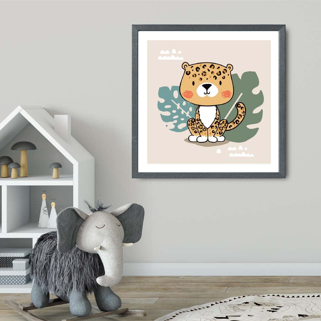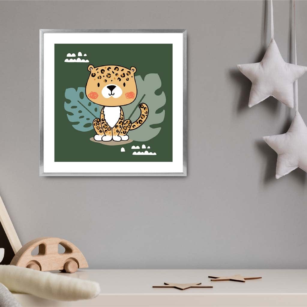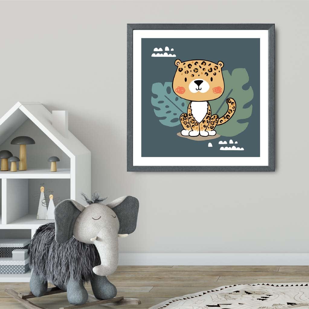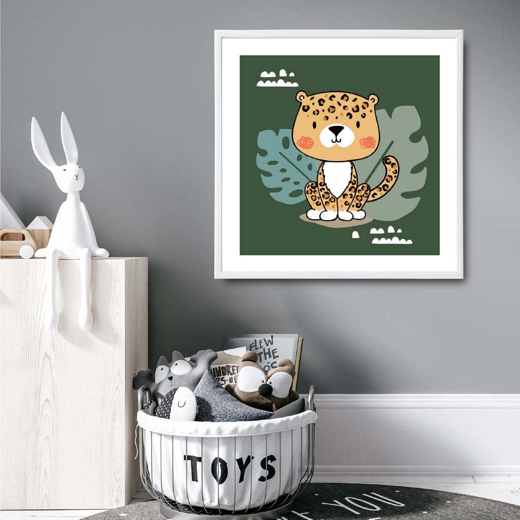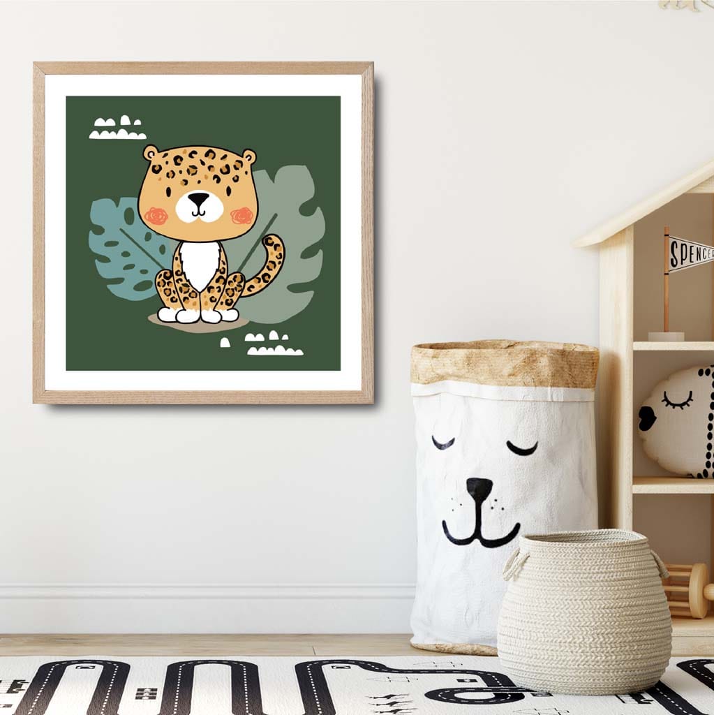 Cute Leopard FRAMED Print on Dark Green Jungle Kids Wall Art
