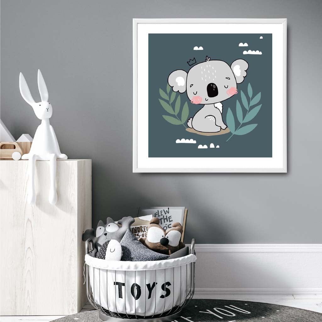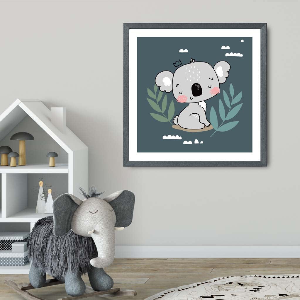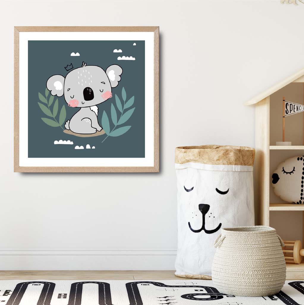 Cute Koala FRAMED Print on Teal Blue Jungle Kids Wall Art