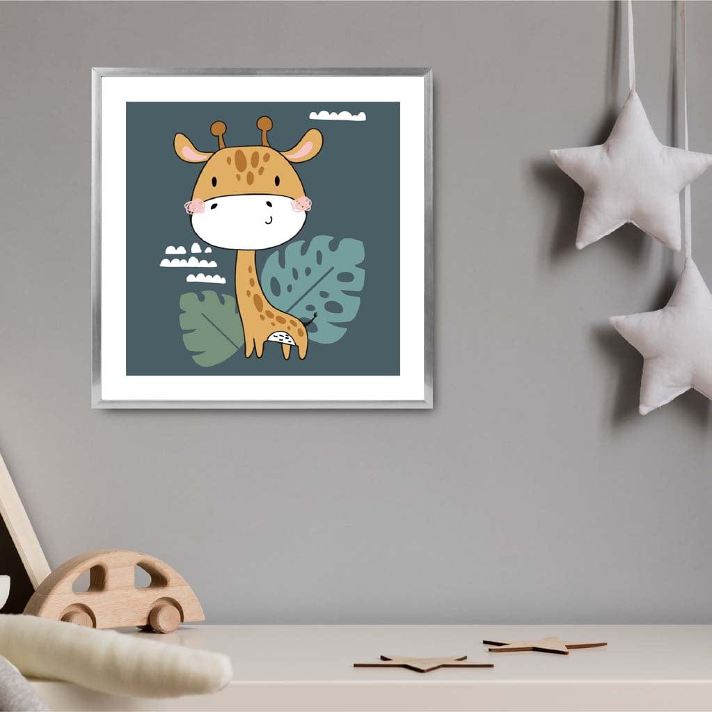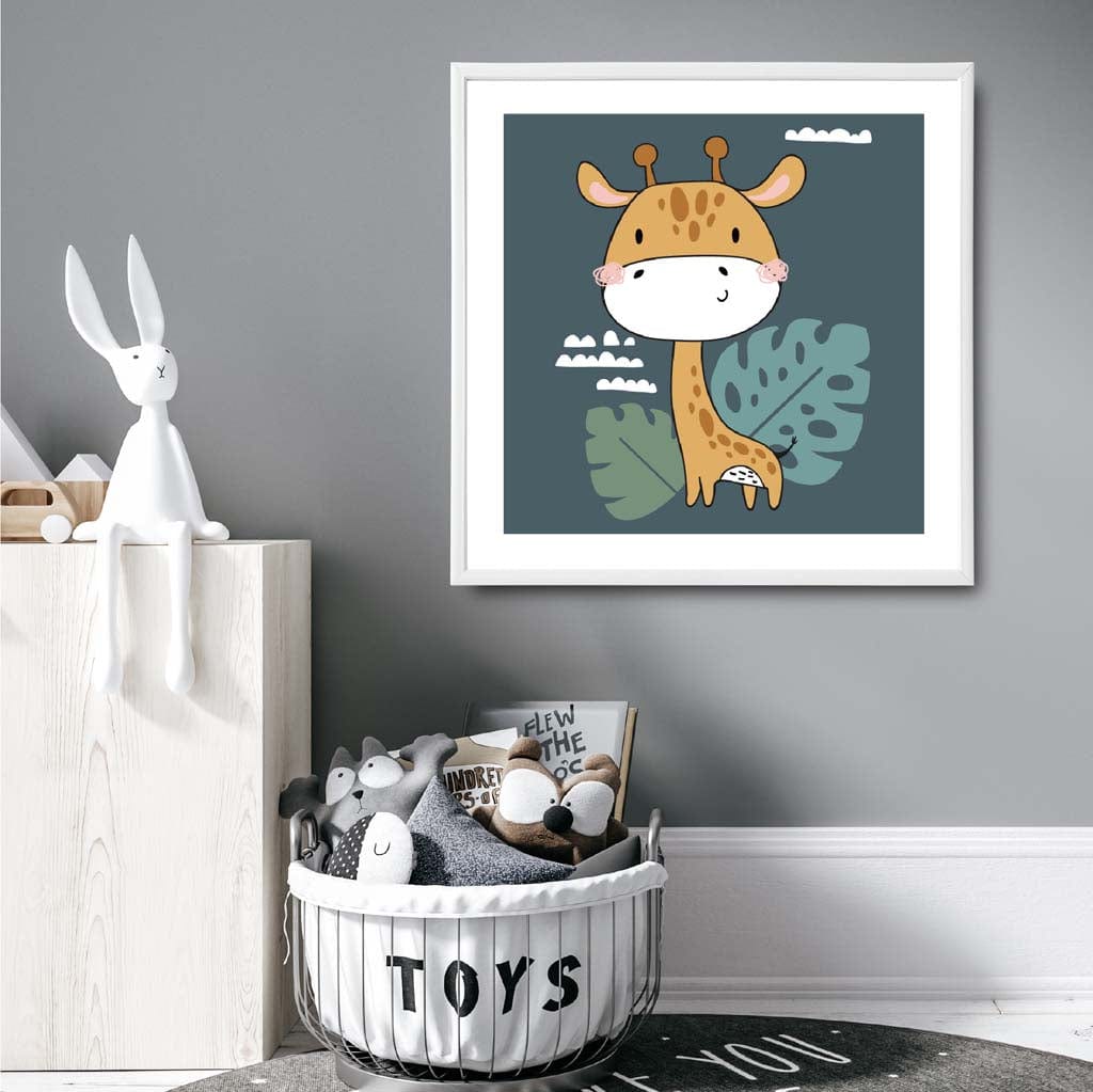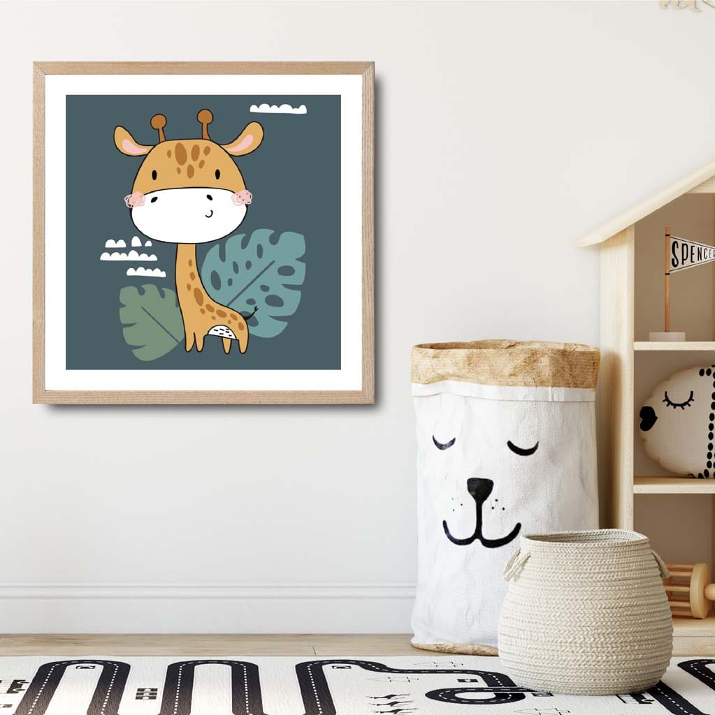 Cute Giraffe FRAMED Print on Teal Blue Jungle Kids Wall Art