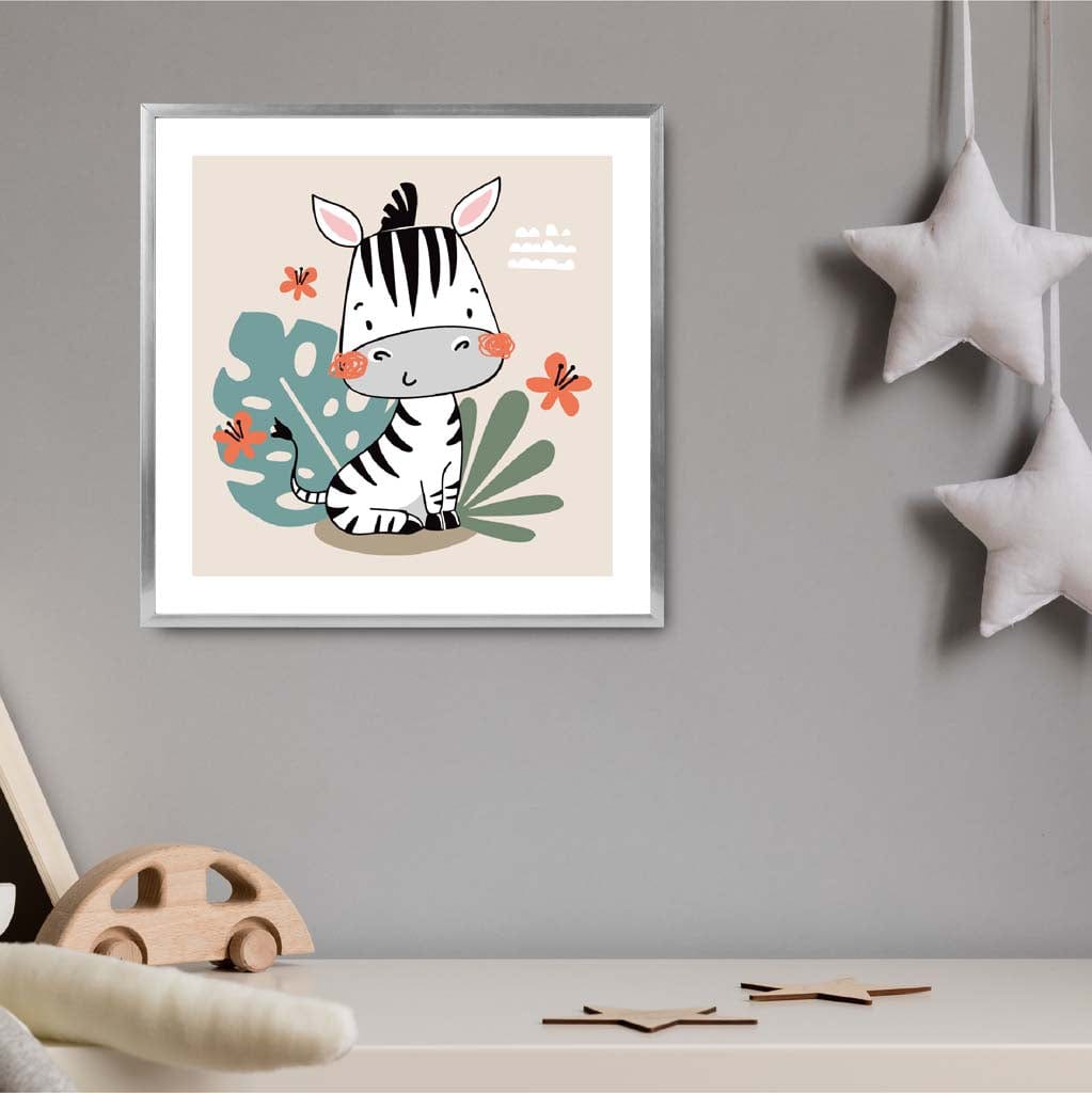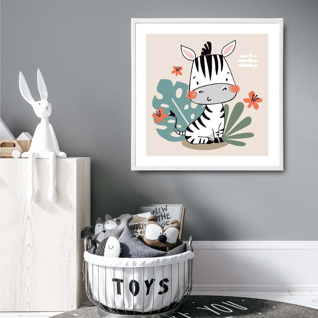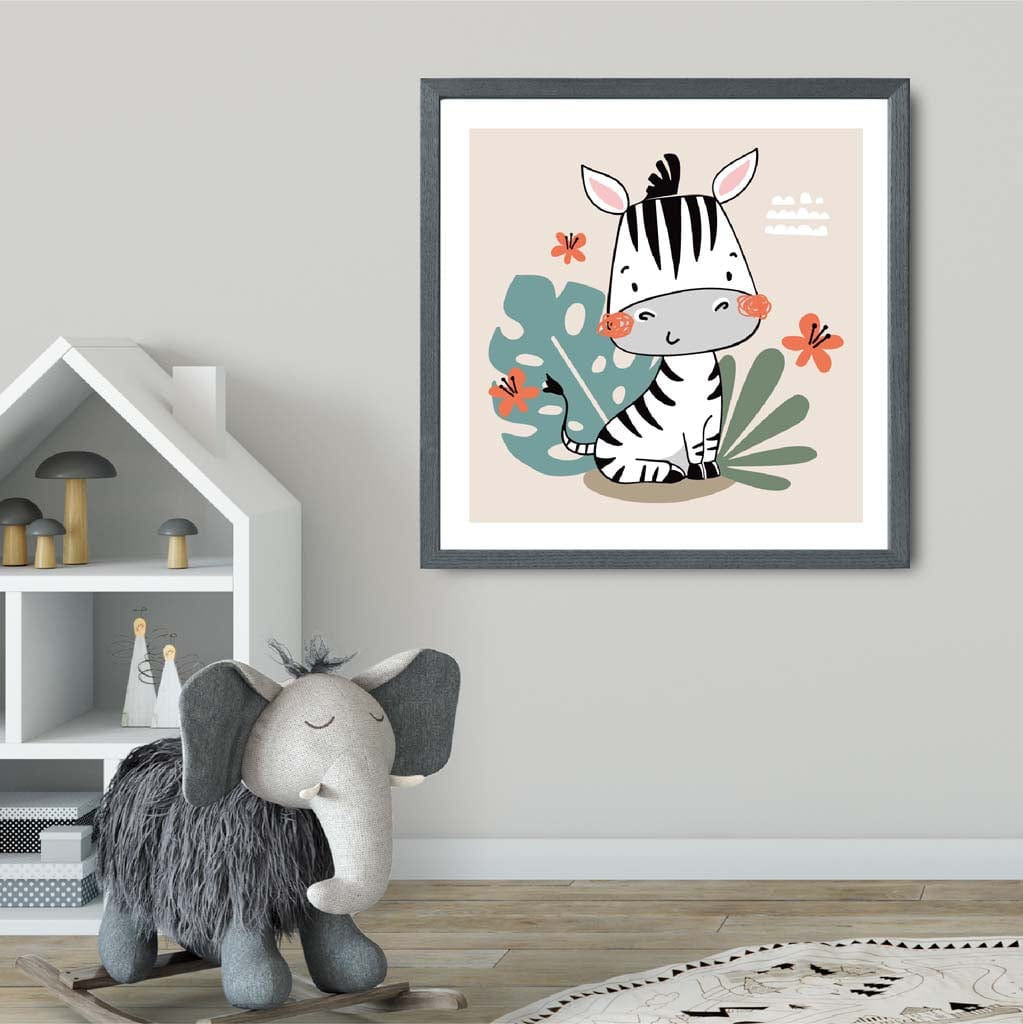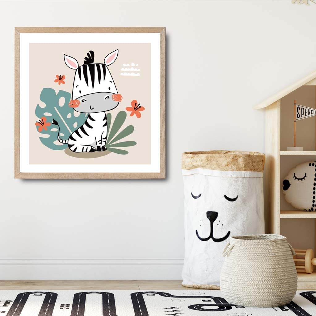 Cute Zebra FRAMED Print on Beige Jungle Kids Wall Art